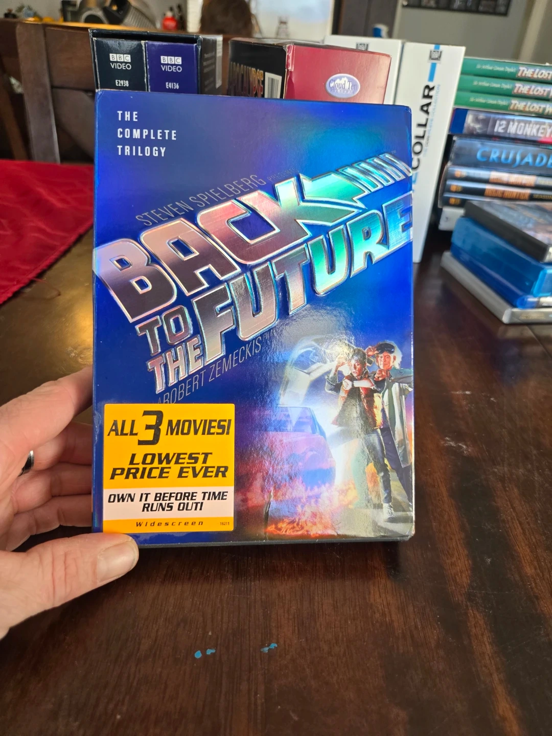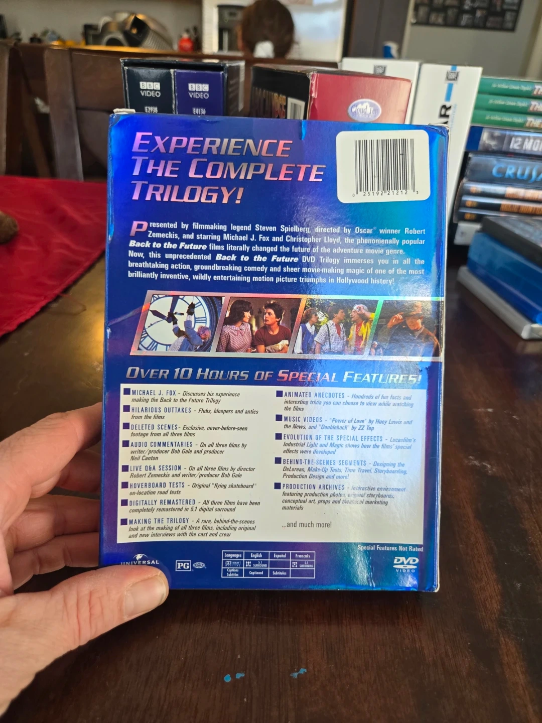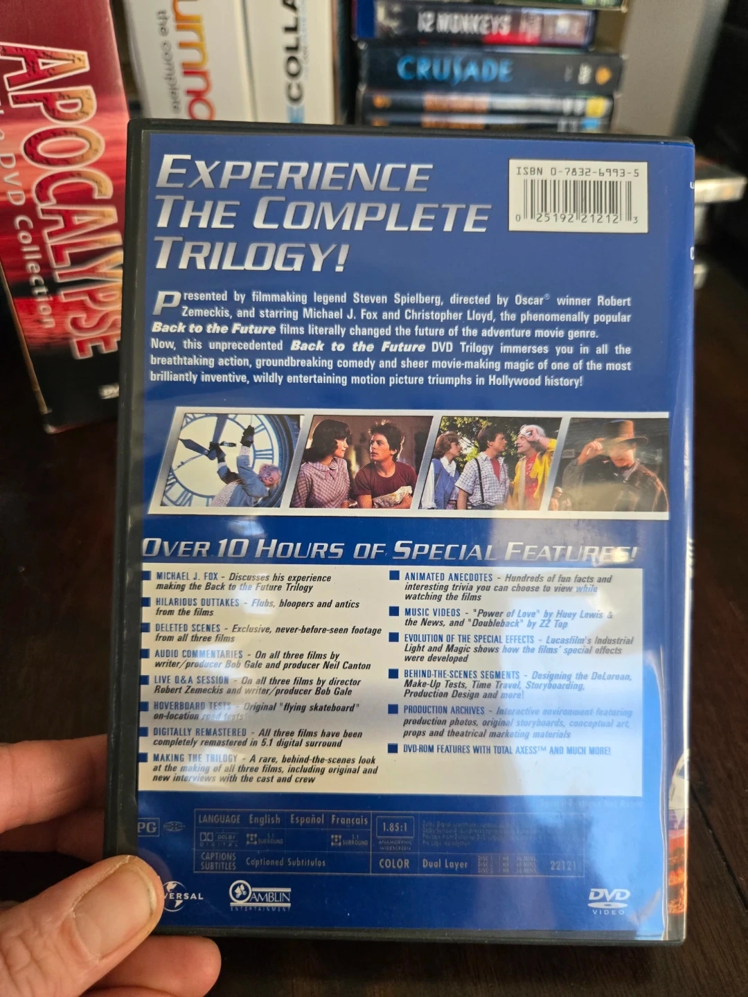 Experience the complete Back to the Future trilogy with this DVD set! It includes all three films, over 10 hours of special features, and digital remasters. Includes original box and discs.