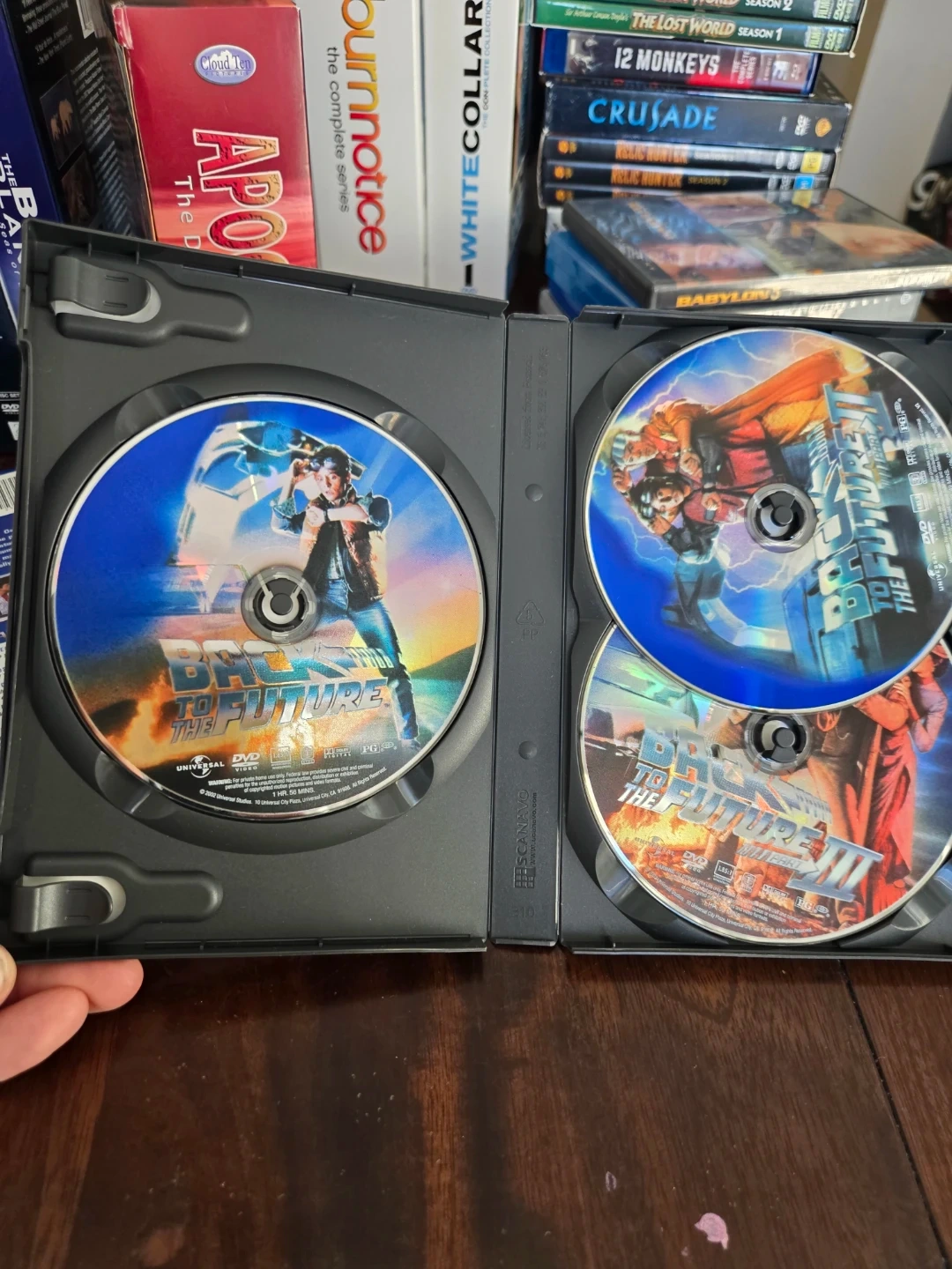 Experience the complete Back to the Future trilogy with this DVD set! It includes all three films, over 10 hours of special features, and digital remasters. Includes original box and discs.