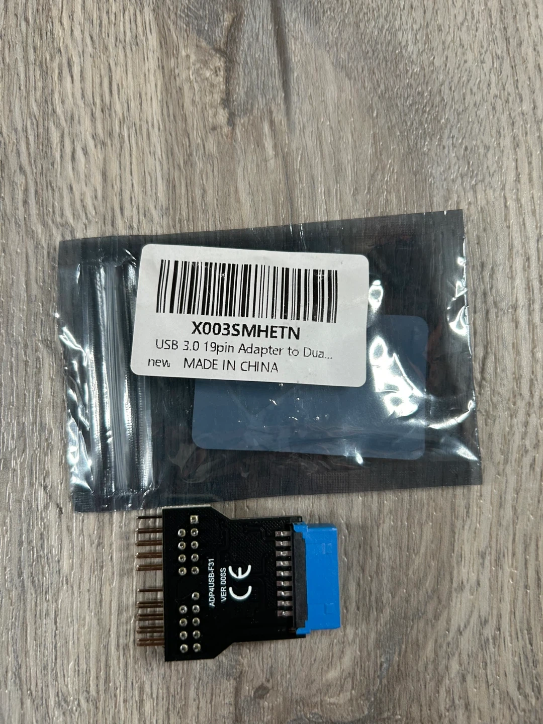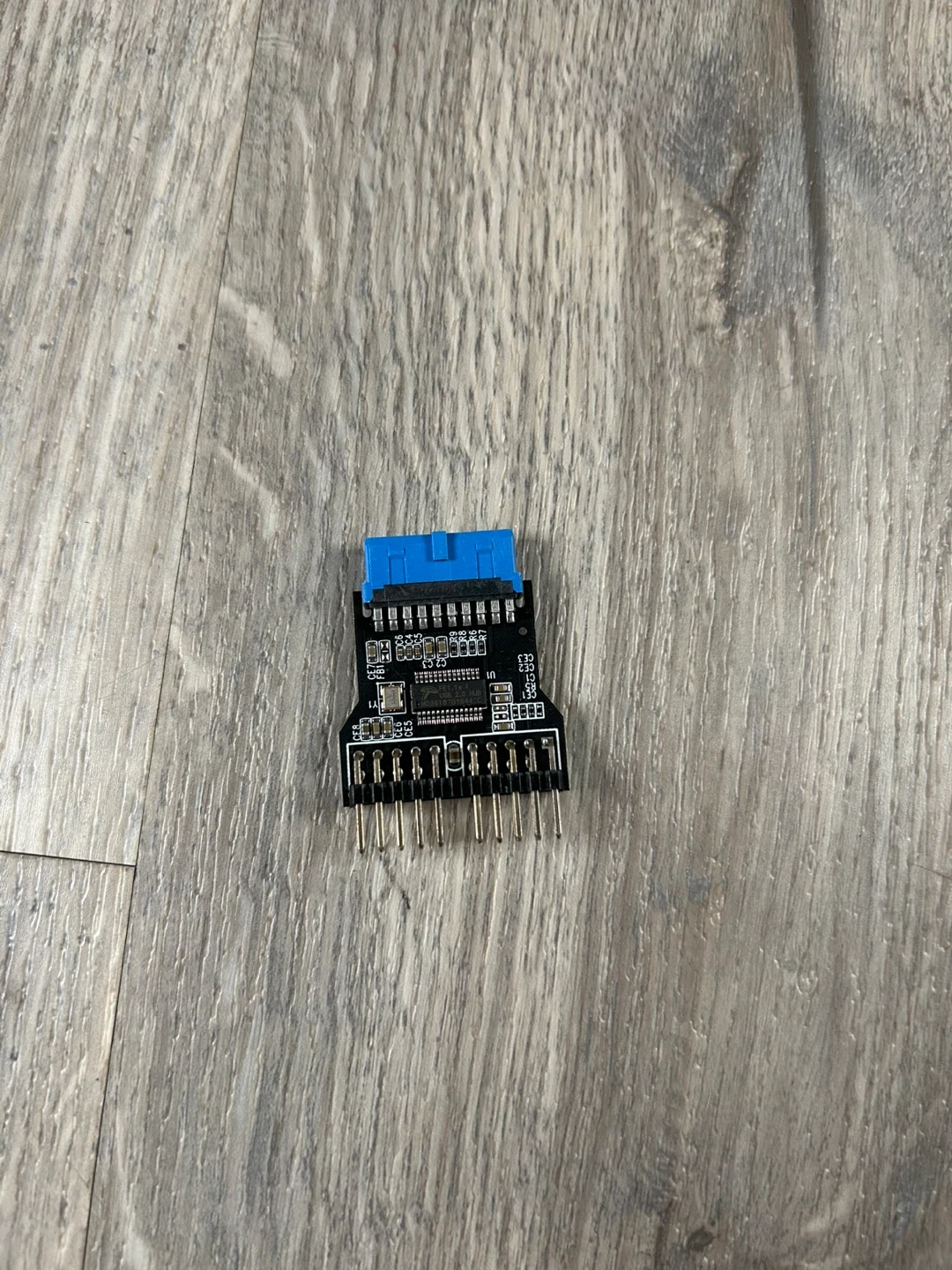 This adapter allows you to convert a USB 3.0 19-pin header to two USB 2.0 headers. It's useful for expanding your motherboard's USB connectivity. The adapter has a blue USB 3.0 19-pin connector on one end and multiple pins for USB 2.0 headers on the other.
