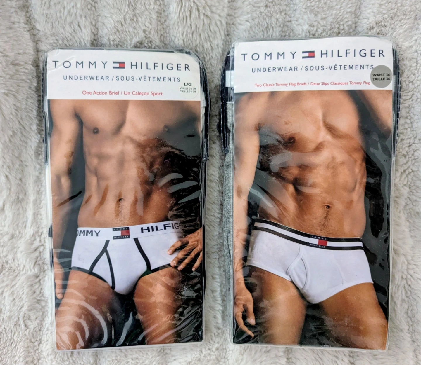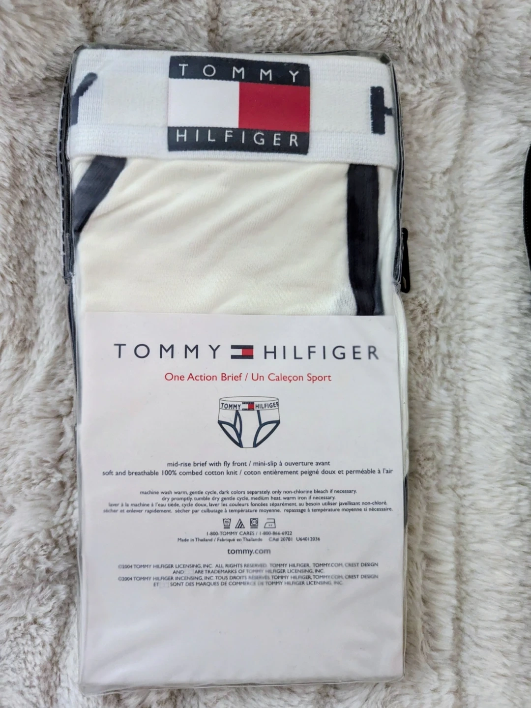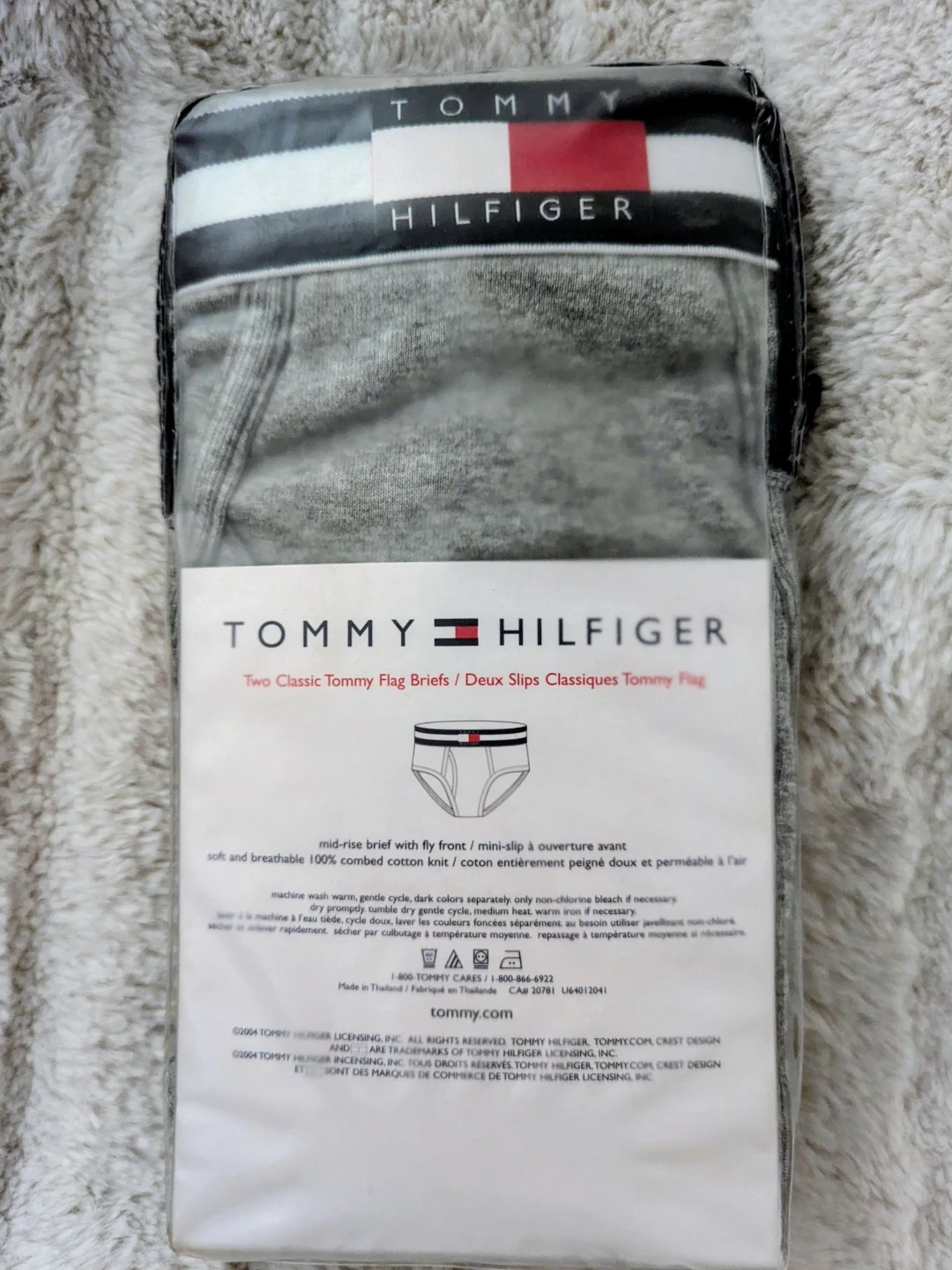 Brand new 2 pairs of Tommy Hilfiger Classic Flag Briefs in gray and 1 One Action Brief in white. They're made of soft and breathable 100% combed cotton knit.