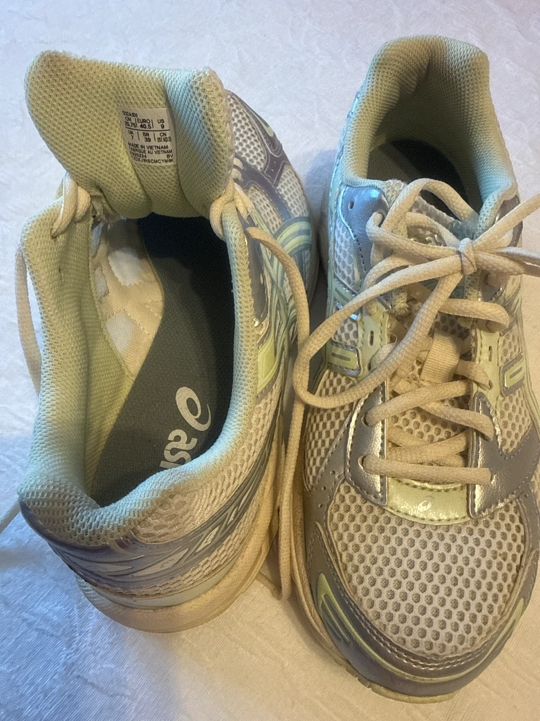 These ASICS women's running shoes are designed for comfort and performance. They feature a breathable mesh upper and a supportive sole. Size is 9 US Women's.