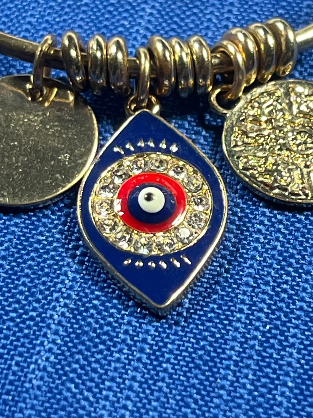 Gold-tone Evil Eye Charm Bangle Bracelet