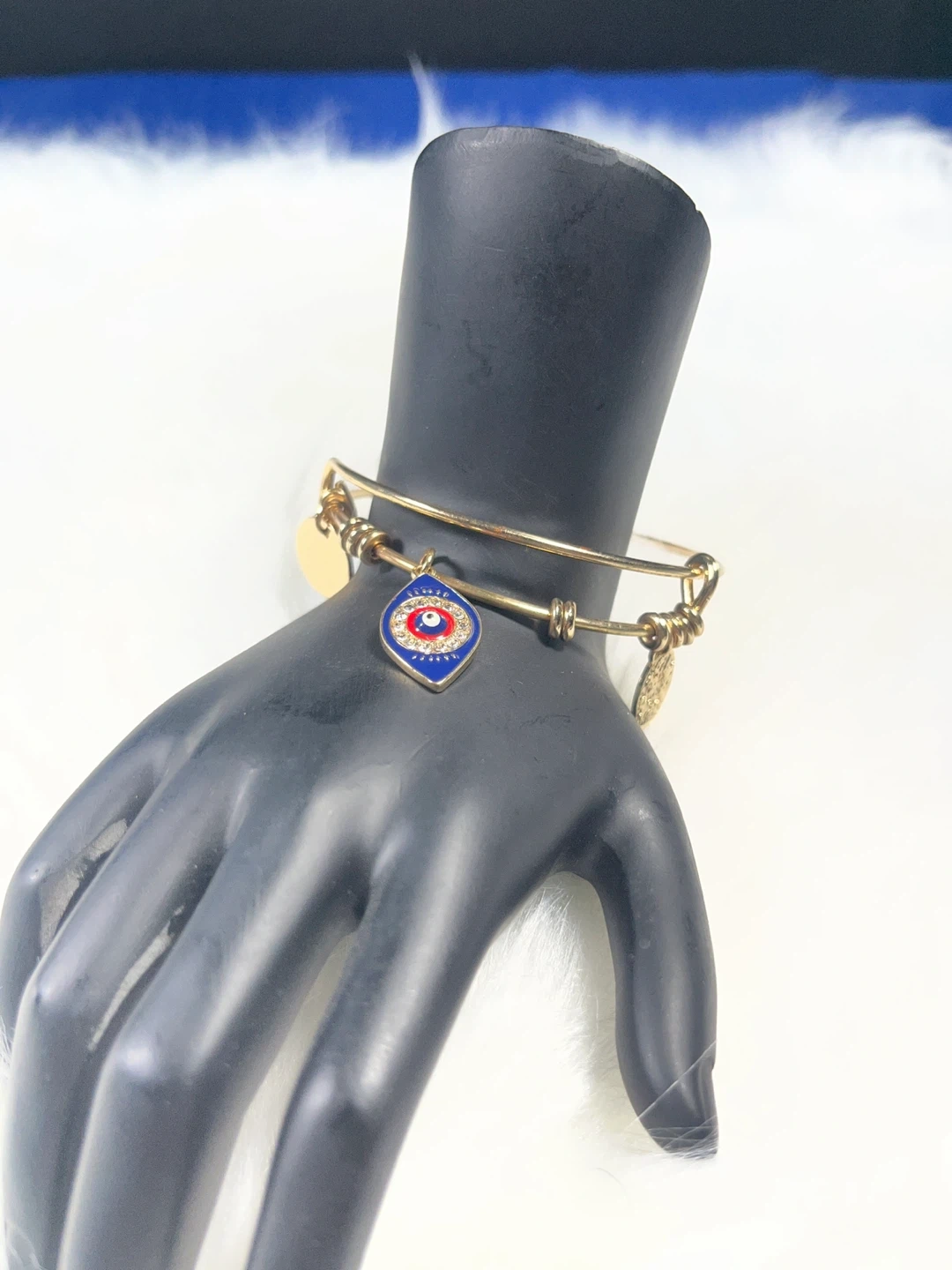 Gold-tone Evil Eye Charm Bangle Bracelet