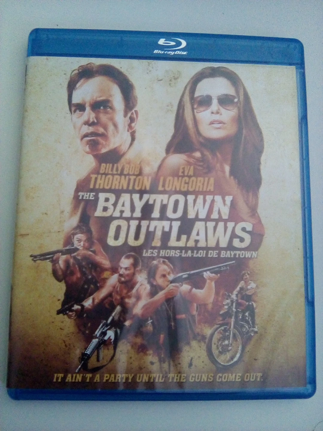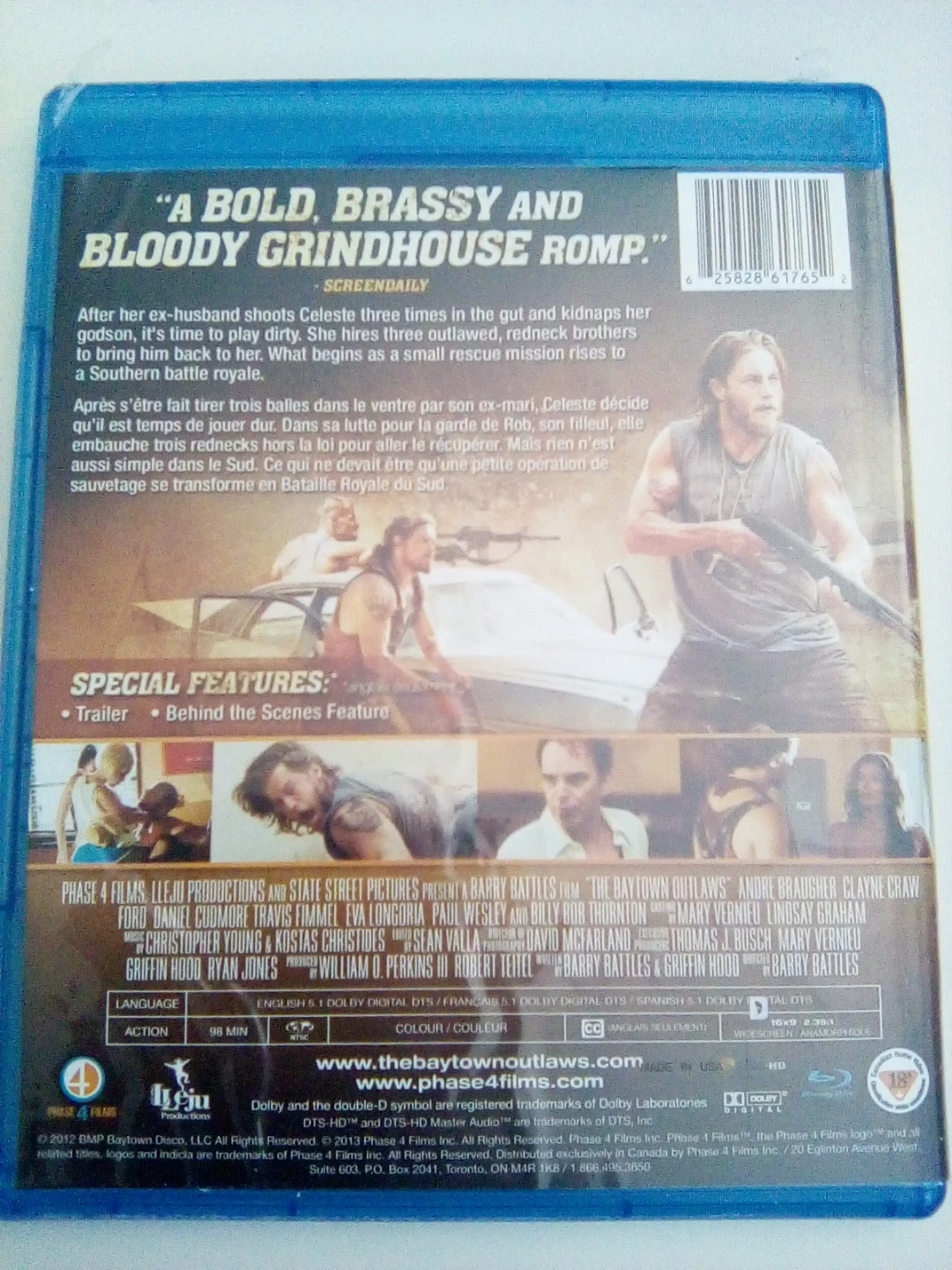 This Blu-ray disc features the action film The Baytown Outlaws. It includes bonus content like trailer and behind-the-scenes features. Audio is available in English, French, and Spanish.
