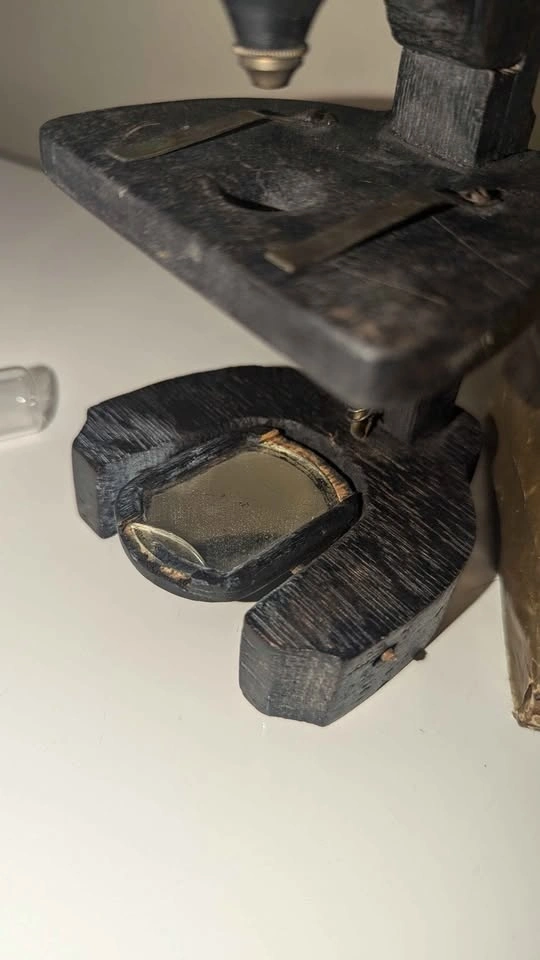 Substage mirror (original; cracked at the edge only)