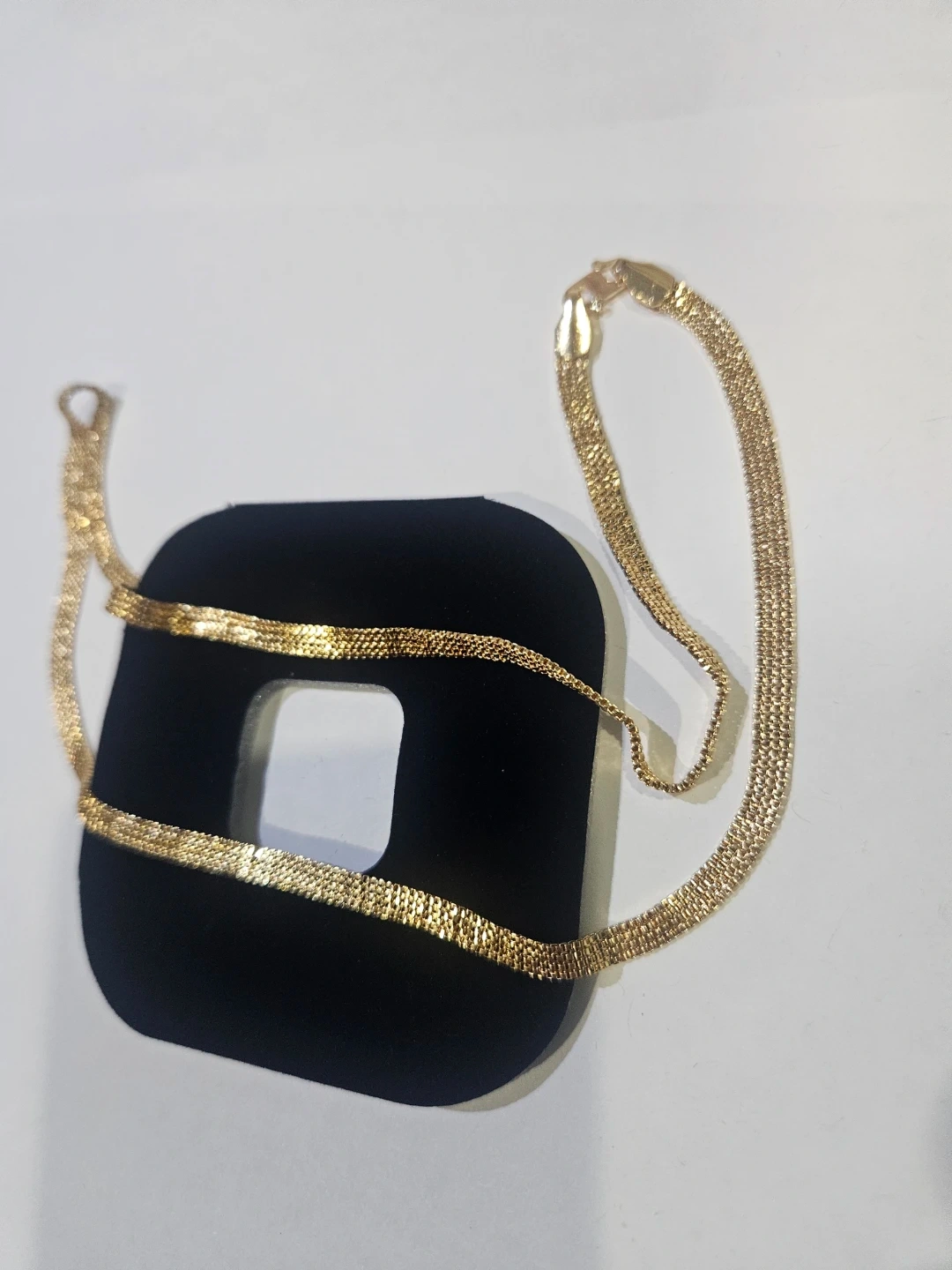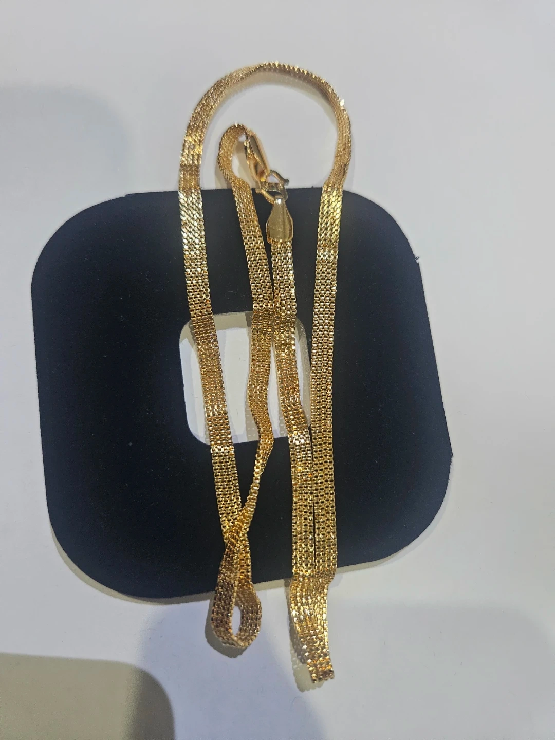 Buy & SellGold-coloured necklace 24 k Gold platedGold-coloured necklace 24 k Gold plated$25This is a gold-coloured chain necklace. It has a mesh-like texture. Secures with a clasp. 24k gold plated Size24WHERE TO MEETCheck LocationView MapSELLERRickyyCentral Hamilton635 reviews0 chats·0 favorites·1 viewsSEND CHAT TO SELLERHi Rickyy! I’m interested in your listing.Hi Rickyy! I’m interested in your listing.Get the Karrot app to chatSign In to chat