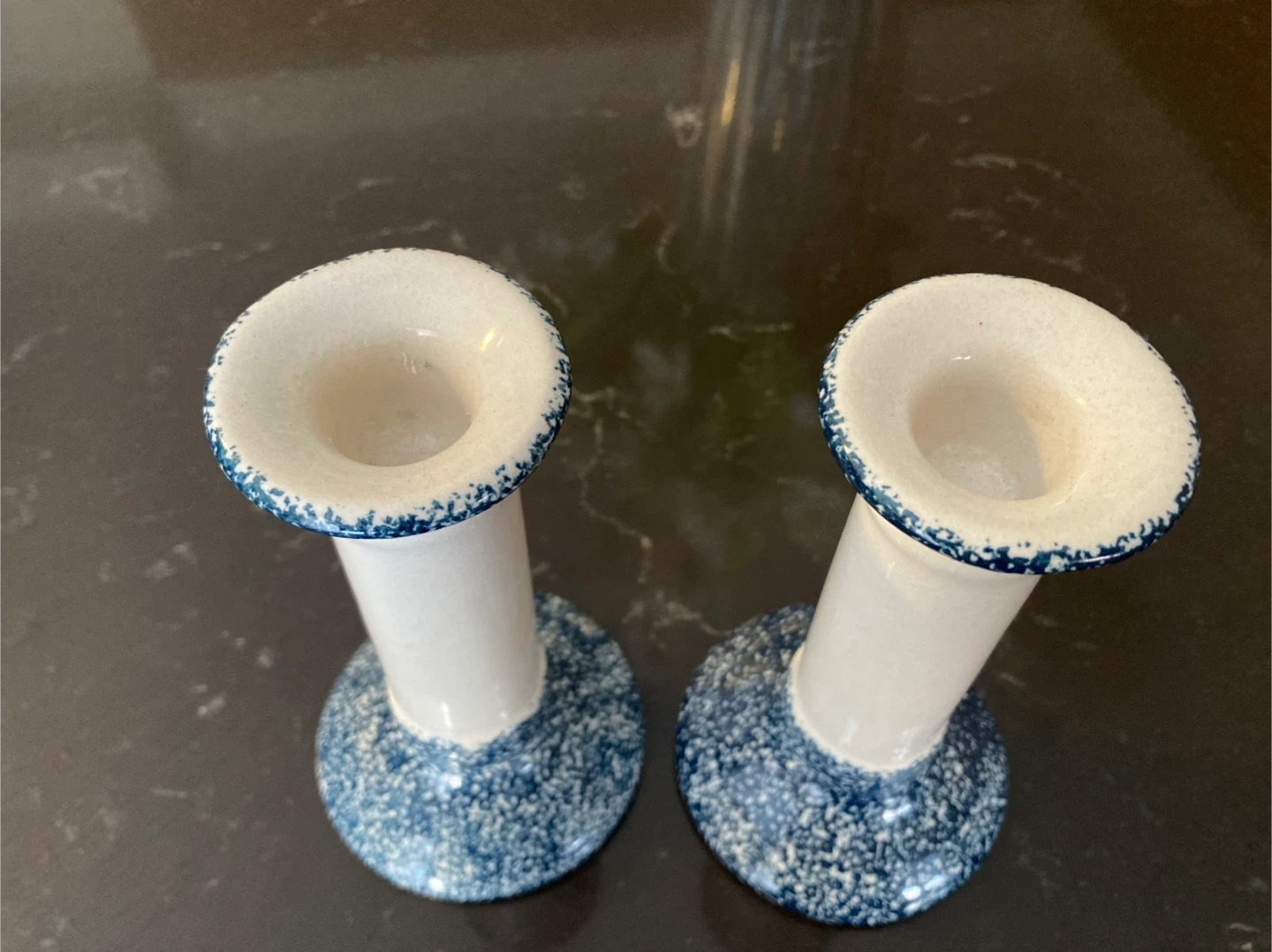 Pair of Ceramic Candlesticks - Blue and White Speckled
