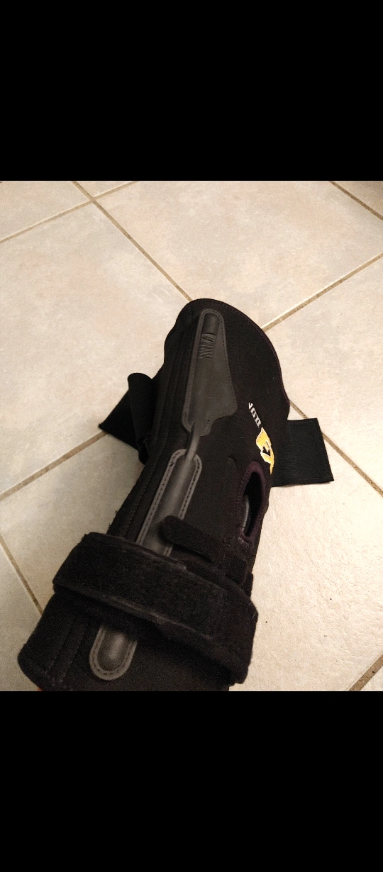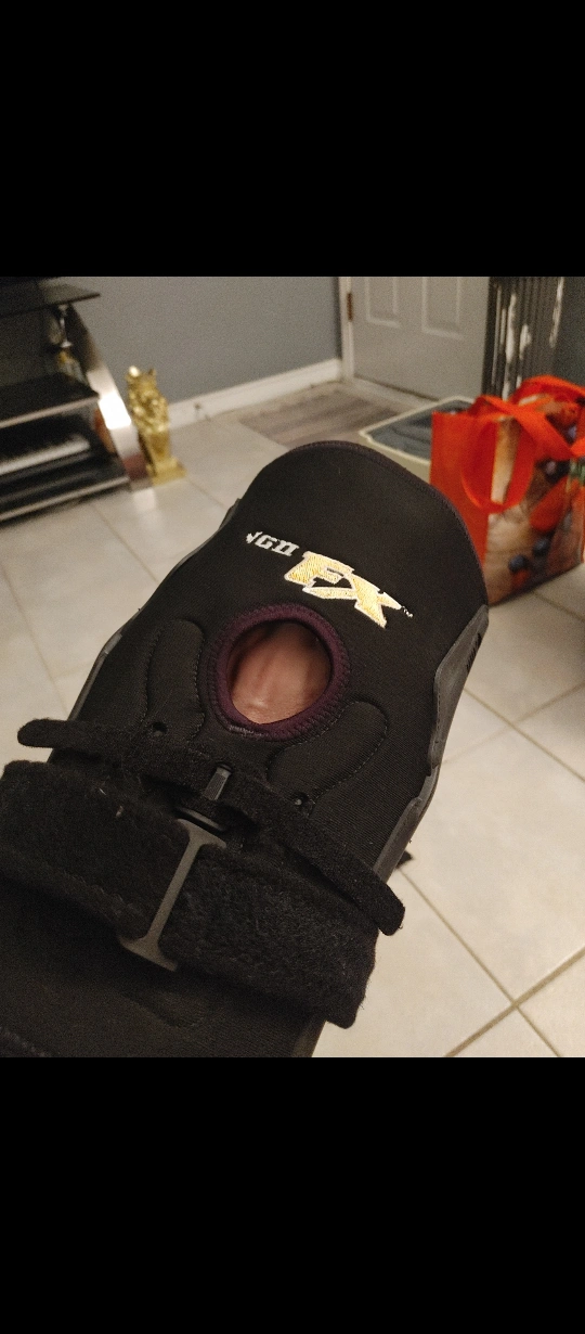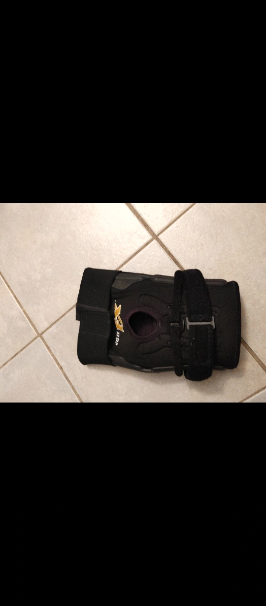 This is a black VGD FX knee brace. It's designed with adjustable straps for a secure fit. The brace has a padded patella opening for comfort.