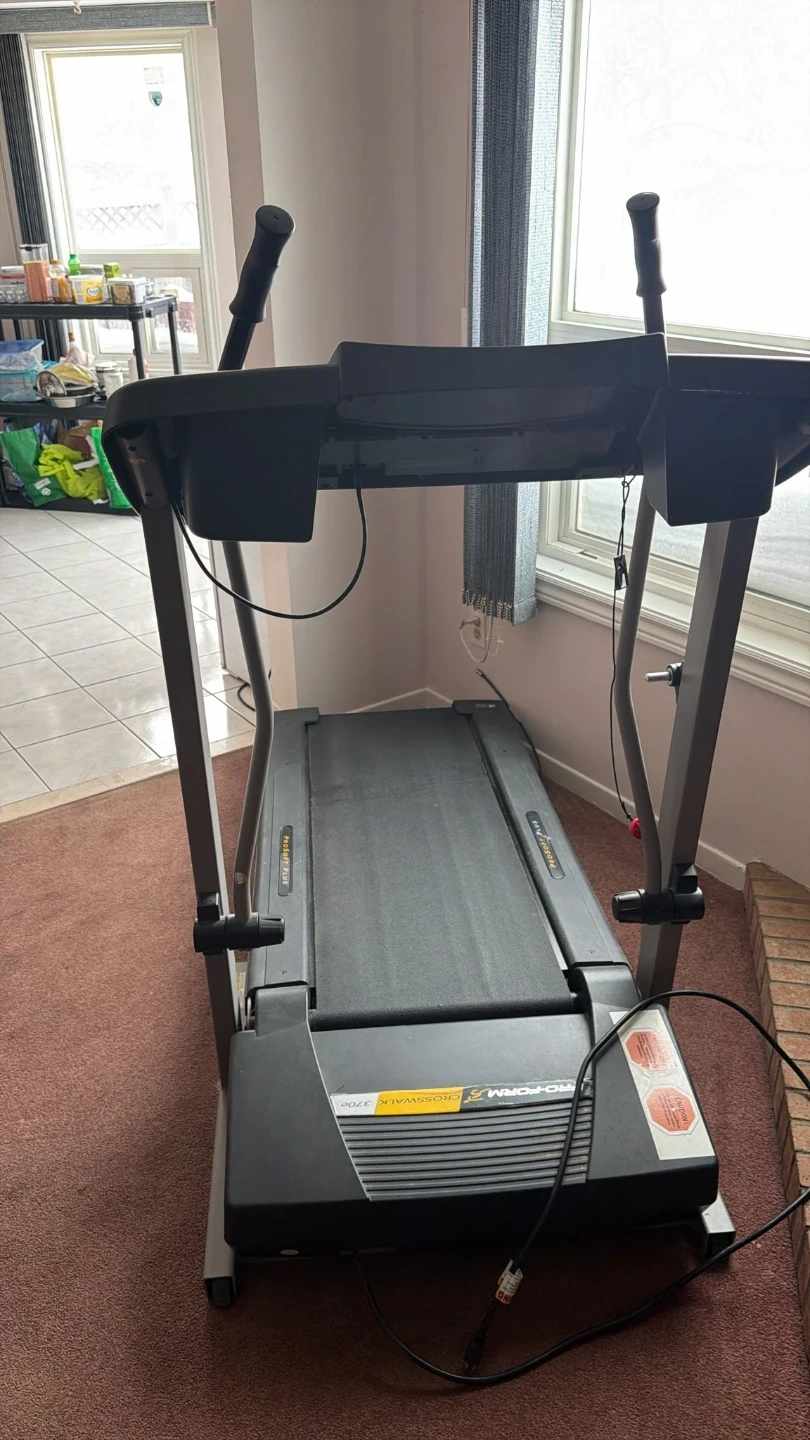 This is a ProForm PROSPORT PLUS treadmill. It has a digital display and built-in programs for your workouts. The belt is black and the frame is grey metal. It's a great addition to any home gym! Or give me best offer