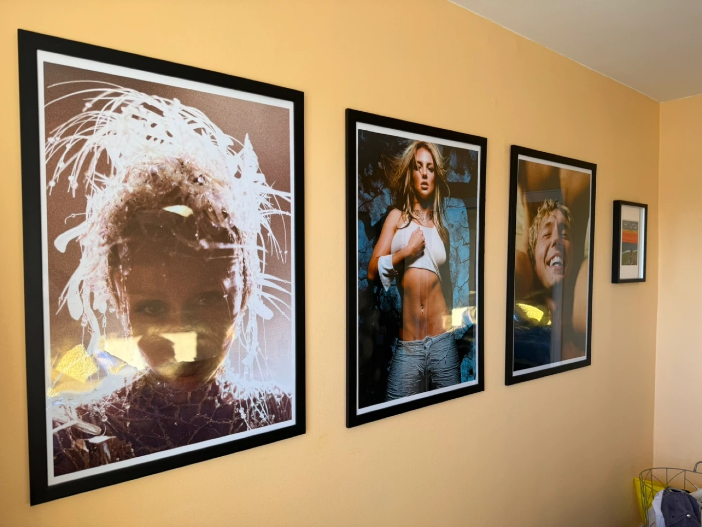 Three framed photos featuring well-known personalities. Each photo is presented in a black real wood frame with glass protection. These pieces are ready to hang and add character to any room.