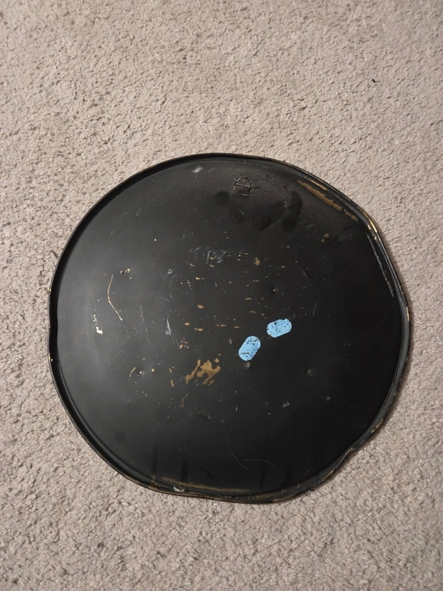 Elegant vintage handmade Greek decorative wall plaque with a black background and 24k gold-painted raised relief of classical Greek warriors. Features dynamic poses, Greek key details, and a mythological or heroic scene. It's about 12.5" in diameter and weighs around 600g. The plaque has 24k gold accents and a hanger on the back, ready to display. Condition is good vintage, with some edge chips and gold wear that add character, but no cracks. A timeless neoclassical accent for your home, office, or Mediterranean decor. Stunning contrast and detail!