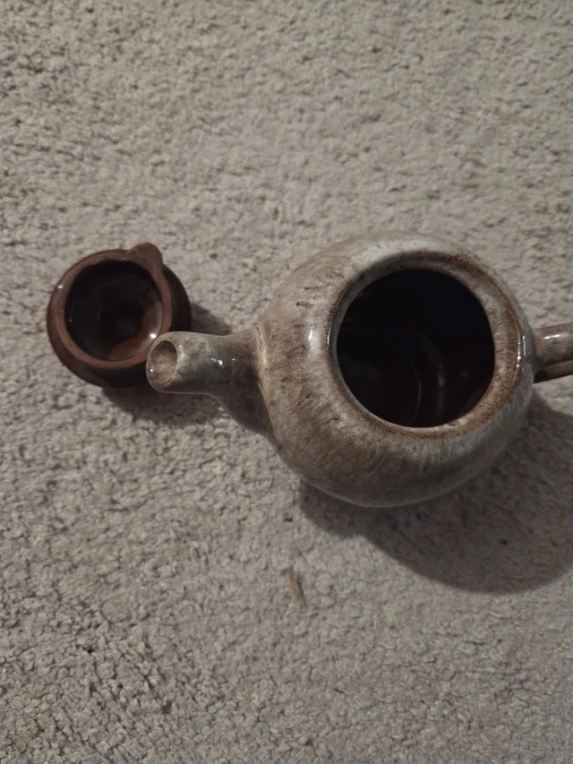 Vintage Japanese Stoneware Teapot, Mottled Drip Glaze, 6.5" x 4"