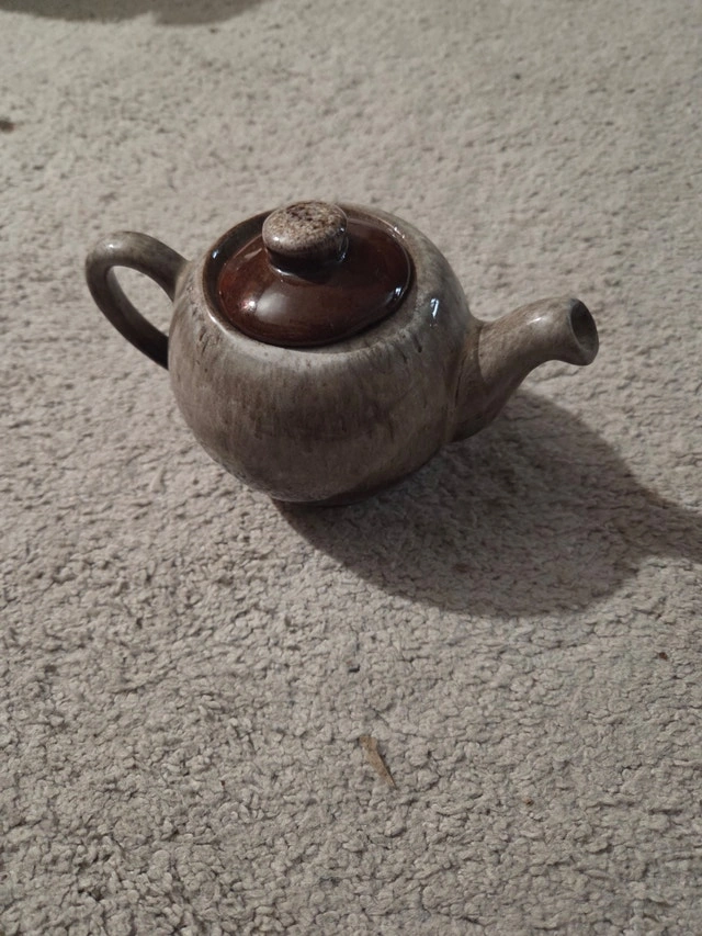 Beautiful vintage Japanese stoneware teapot with a rustic, earth-toned drip glaze finish. This 4-inch tall teapot is perfect for individual use or as a decorative accent in a Mid-Century Modern or minimalist kitchen. Excellent vintage condition with no chips, cracks, or tea staining. Dimensions: 4" High x 6.5" Wide (spout to handle). Pairs perfectly with Japandi, MCM, or Wabi-Sabi decor. Made in Japan (Vintage).