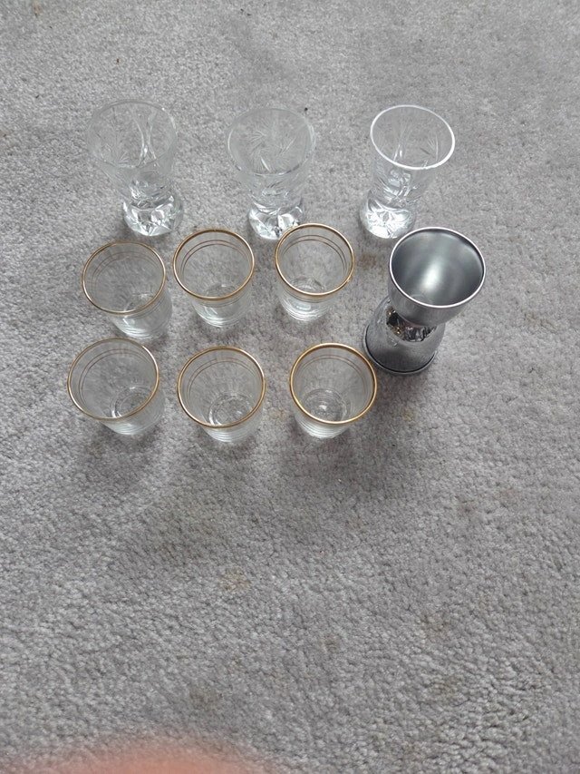 - 6 Vintage French gold-rimmed shot glasses (stamped "France" on base)
