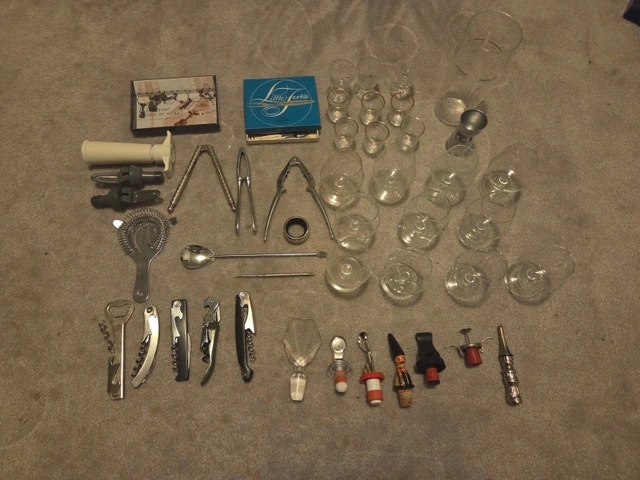 63-Pc Vintage MCM Bar Collection & Hand-Carved Tools
