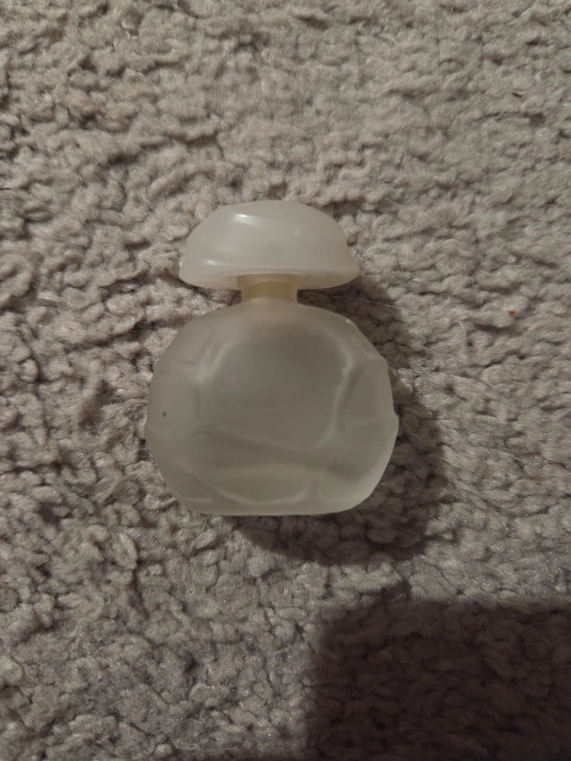 A beautiful collector's piece: a vintage 1.5" miniature frosted glass perfume bottle of "Quelques Fleurs L'Original" by the historic House of Houbigant, Paris. Size: 3ml / 0.1 fl oz (Approx. 1.5" tall). Excellent vintage condition. Frosted glass bottle with floral petal design. Original label intact on the base. Made in France. A legendary multi-floral fragrance originally created in 1912, known for its complexity and as a favorite of Princess Diana. Perfect for a vanity display or a miniature perfume bottle collection.