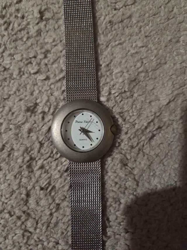 Retro fashion watch by Pierre Rucci with a modern, minimalist look. Features a unique round silver-tone case and a comfortable stainless steel mesh strap. Brand: Pierre Rucci. Movement: Quartz (Battery operated). Band: Adjustable stainless steel mesh band in good condition. Needs a new battery. Good vintage condition otherwise. There are minor visible scratches, and there is some wear on the bezel consistent with vintage use. A great, affordable accessory for a retro look or for parts.