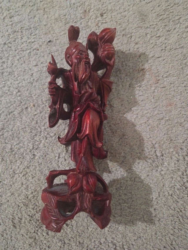 Add a touch of ancient wisdom and symbolic protection to your home with this exquisite hand-carved statue of Shou Lao, the legendary Taoist God of Longevity. Perfectly sized for a desk, bookshelf, or meditation space, this piece is a beautiful example of traditional Chinese wood craftsmanship.