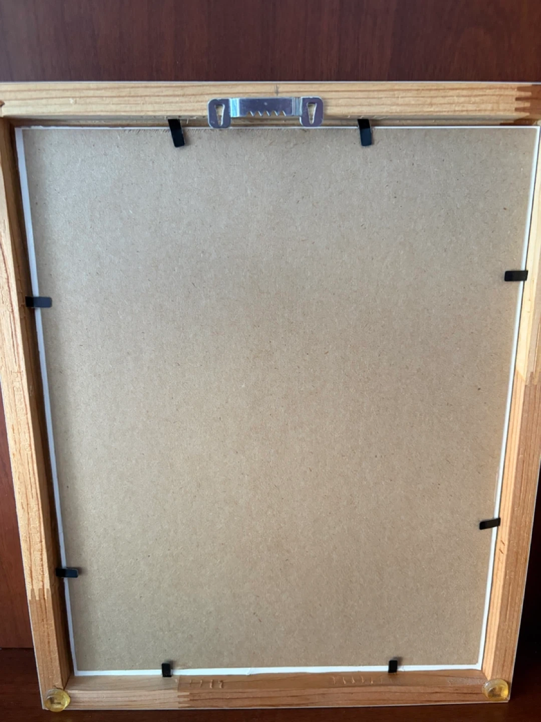 White frame is glossy. 11” H x 9” W. Has hook in back. In excellent clean condition.