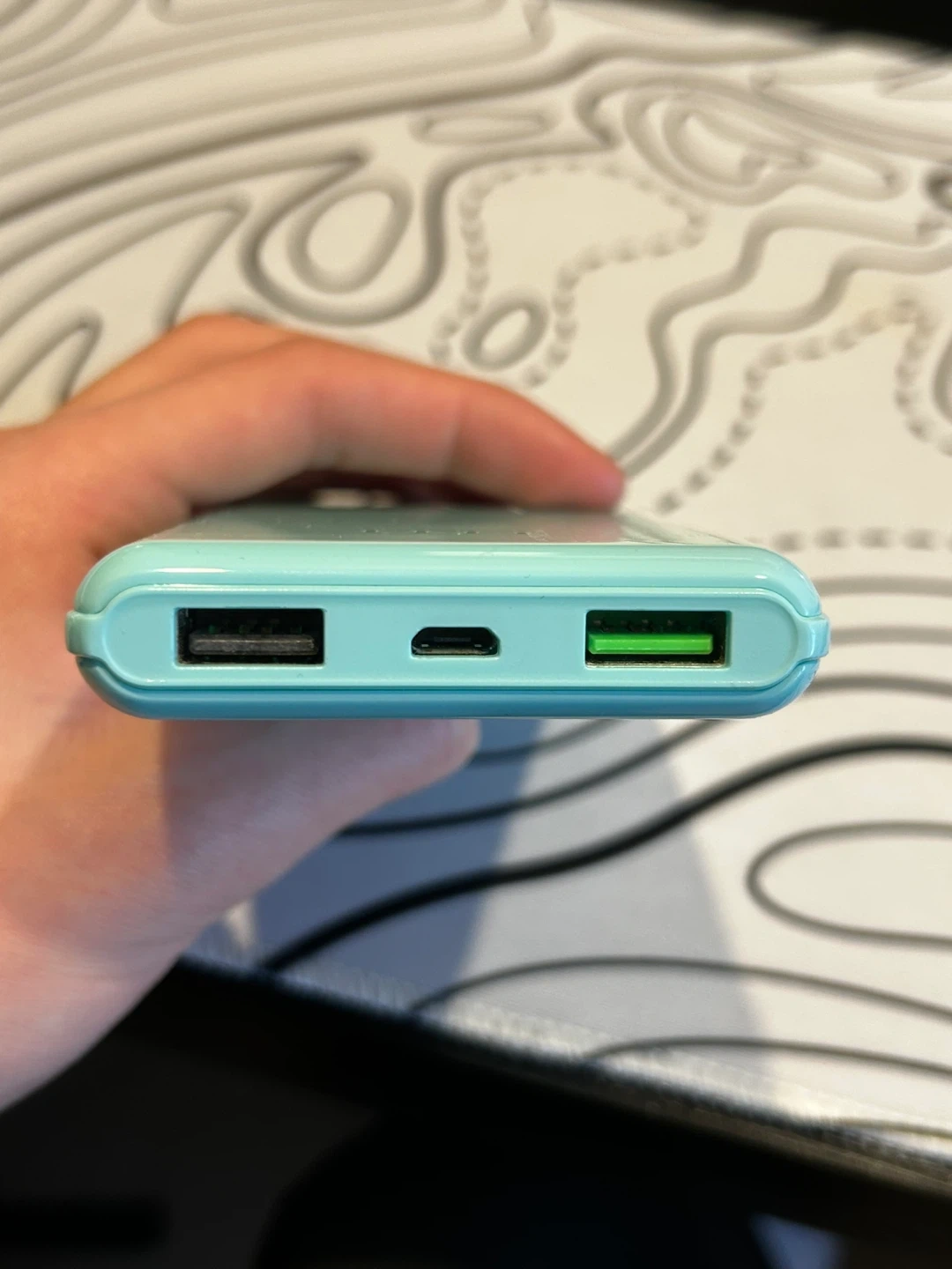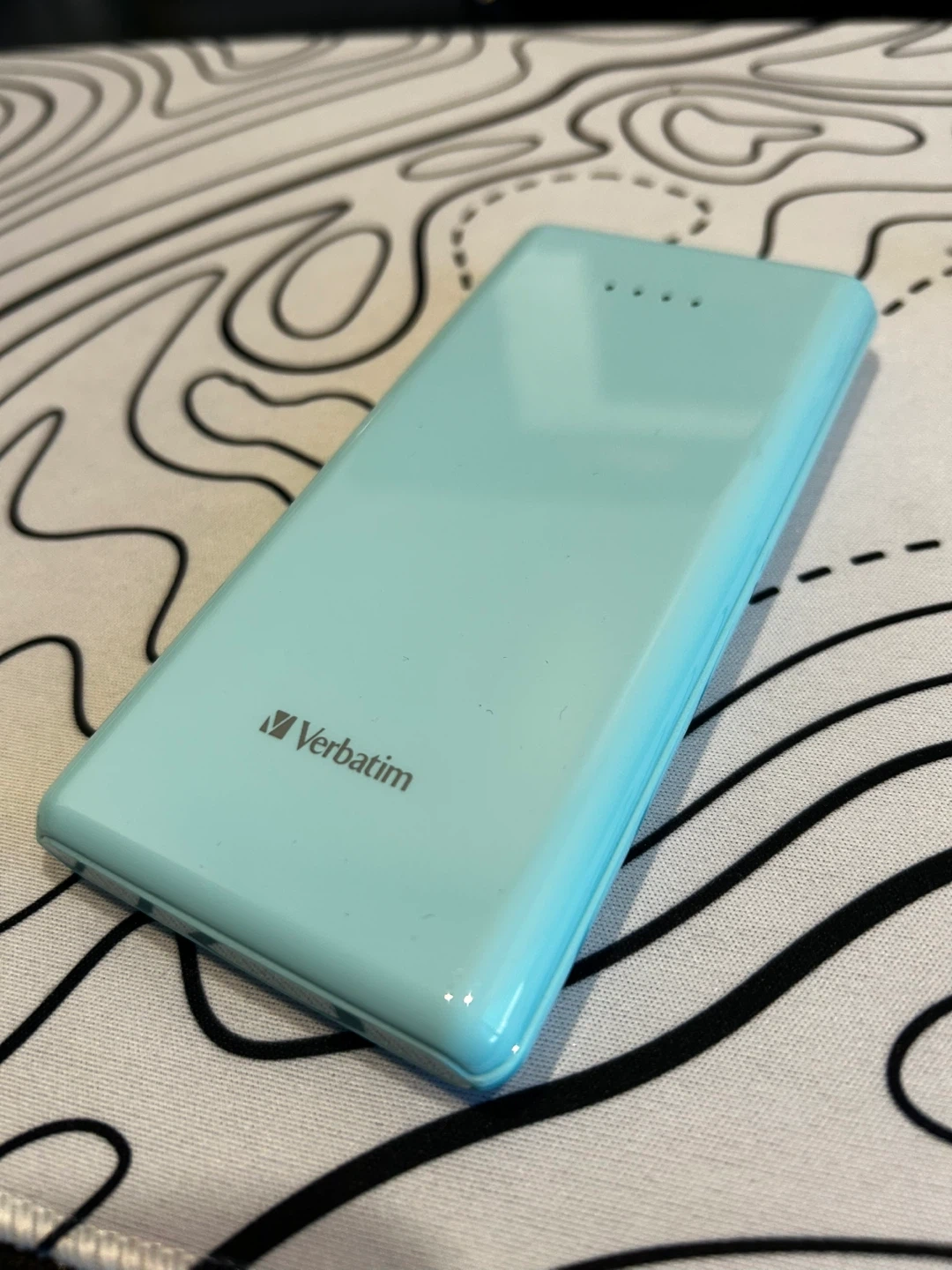 Verbatim 10000mAh power bank. It supports Qualcomm Quick Charge 3.0. Includes two USB-A output ports and one micro-USB input port. Li-Polymer battery type.
