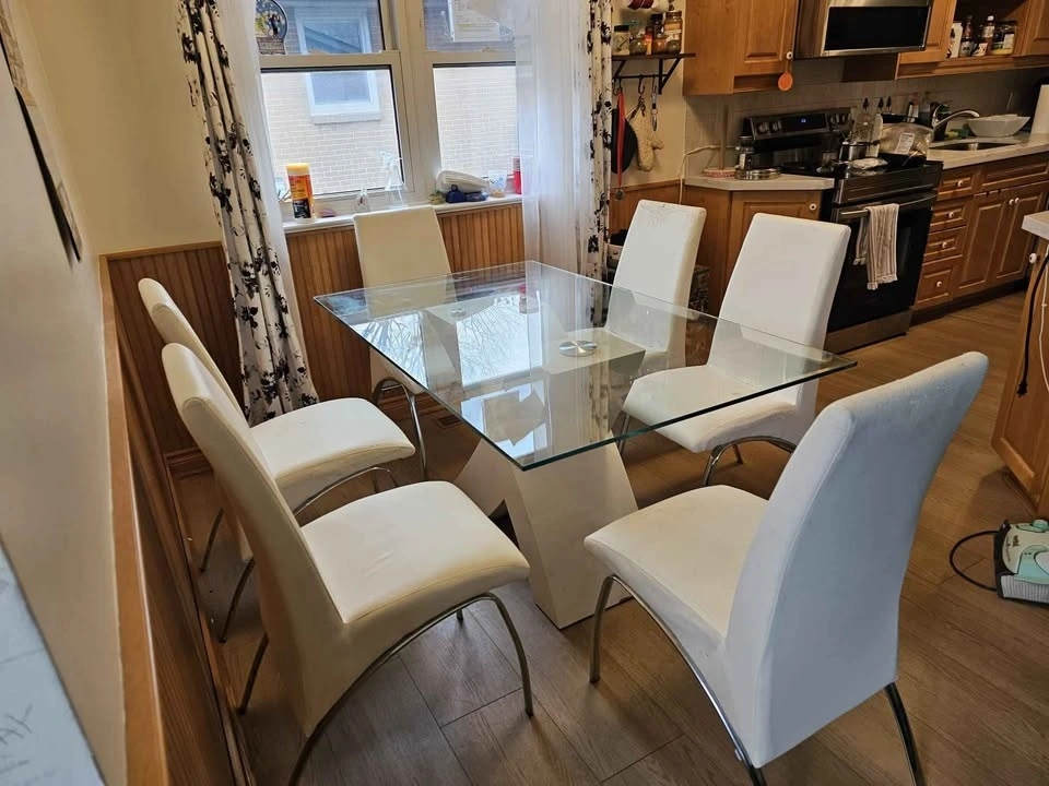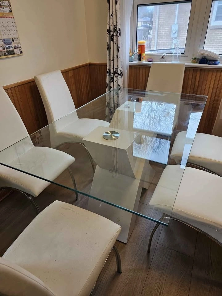 Buy & SellGlass Dining TableGlass Dining Table$360A 6 seater glass table and 6 chairs. Normal wear and tear. The price can be negotiated based on that.WHERE TO MEETCheck LocationView MapSELLERPoojaW Lynde100 reviews1 chats·0 favorites·52 viewsSEND CHAT TO SELLERHi Pooja! I’m interested in your listing.Hi Pooja! I’m interested in your listing.Get the Karrot app to chatSign In to chat