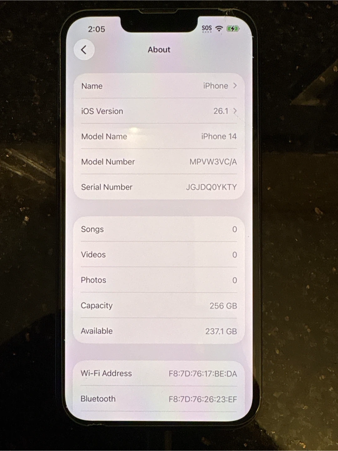 This is an Apple iPhone 14 with 256 GB of storage. It's a deep navy colour. Has small chip on the glass. Works great! Upgraded phone that’s why I’m selling