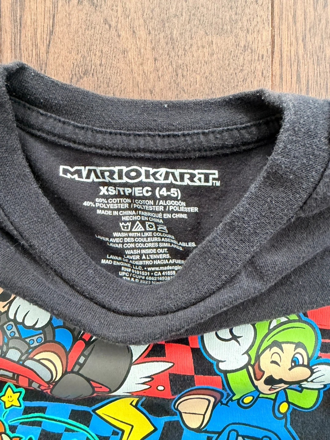 A black Super Mario Kart tshirt (size XS 4-5).