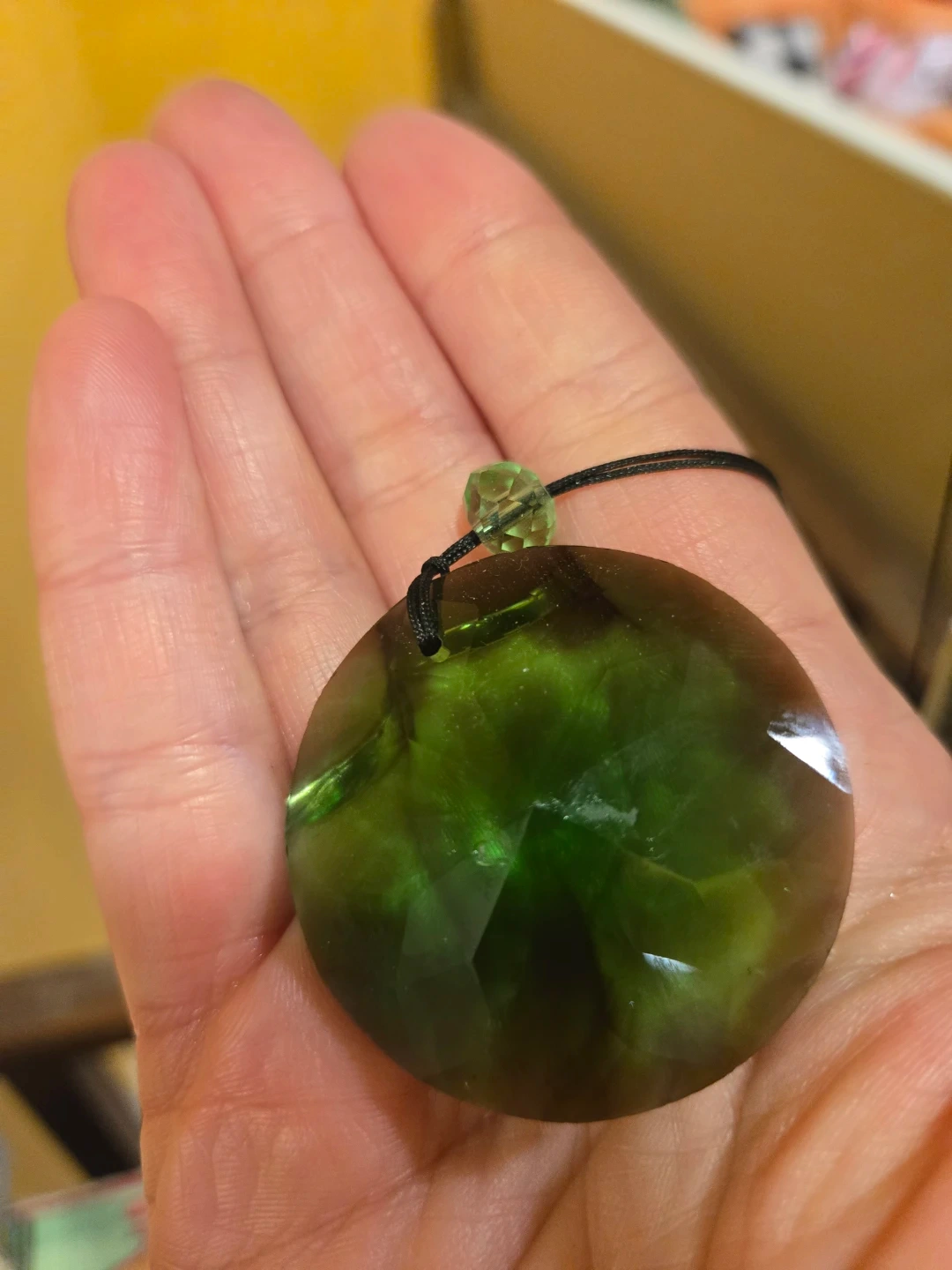 Beautiful metal wind chime featuring silver-toned tubes and a decorative tree of life accent. It has a large green glass crystal at the bottom for added charm. This chime would liven up any outdoor space!