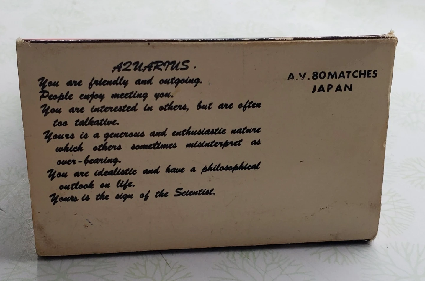 Buy & SellAquarius Zodiac MatchesAquarius Zodiac Matches$10Vintage Aquarius zodiac matches, featuring the water bearer. It contains approximately 80 matches. Made in Japan.WHERE TO MEETYellowhead TrailView MapSELLERnakitaYellowhead Trail13617 reviews0 chats·0 favorites·7 viewsSEND CHAT TO SELLERHi nakita! I’m interested in your listing.Hi nakita! I’m interested in your listing.Get the Karrot app to chatSign In to chat