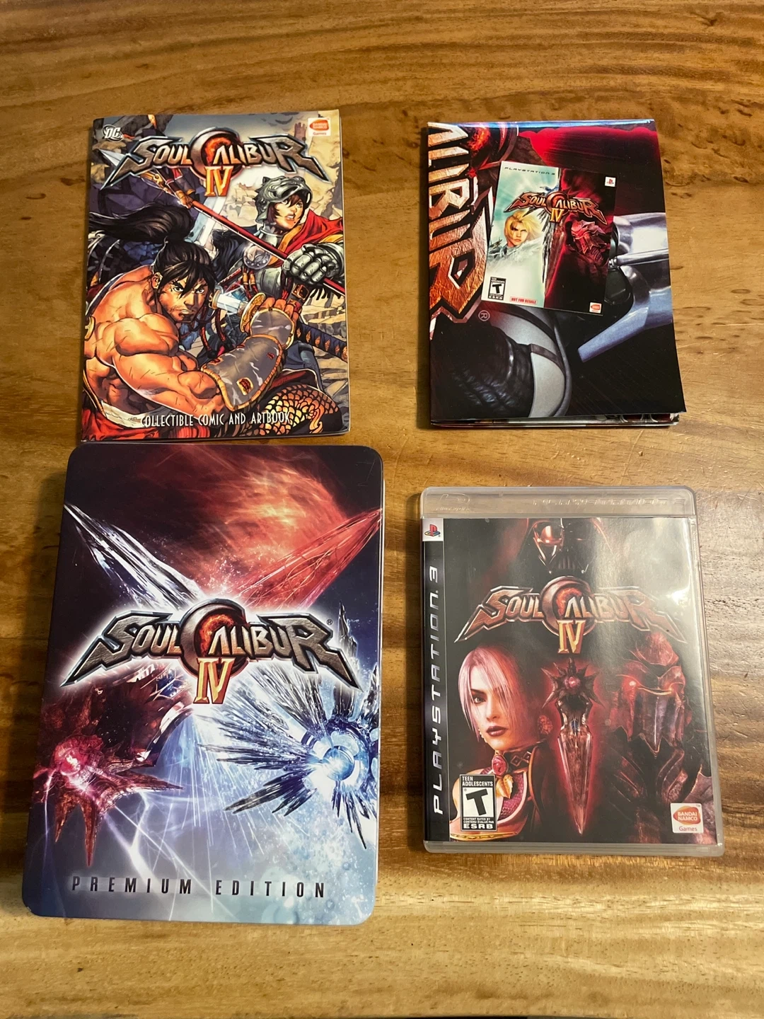 This lot includes the Soulcalibur IV Premium Edition for PlayStation 3 and a collectible comic and artbook. The game features the characters and world of Soulcalibur IV. The artbook contains illustrations and comic stories related to the game.