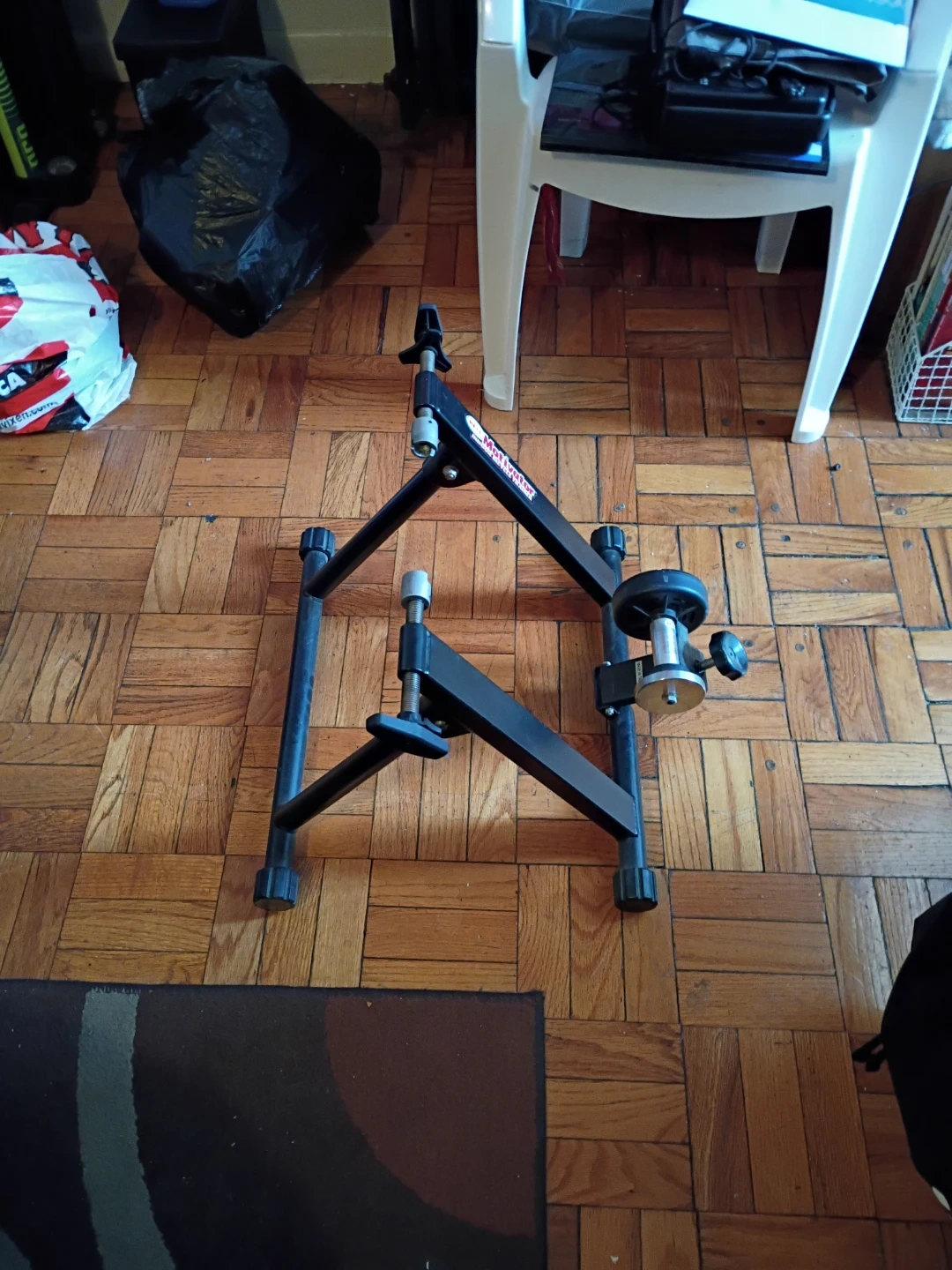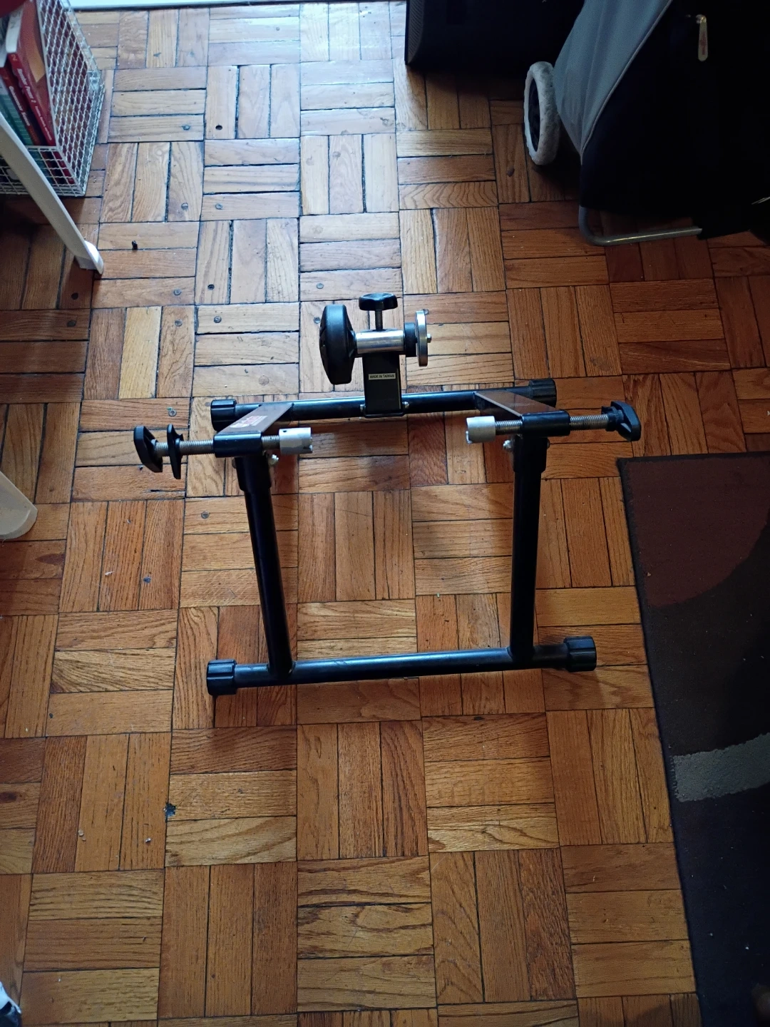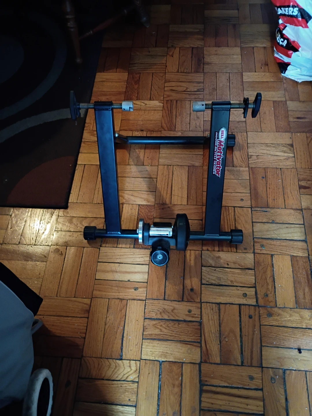Bell Motivator indoor bicycle trainer. Allows you to ride your bike indoors. It's made of durable metal construction. Great for training during bad weather!