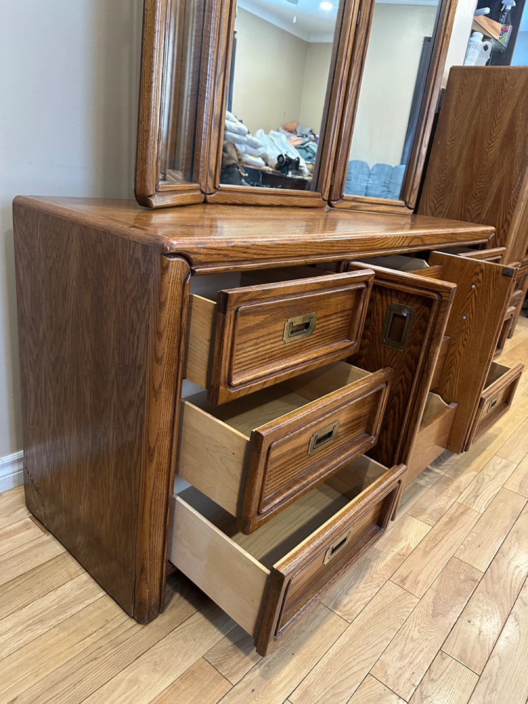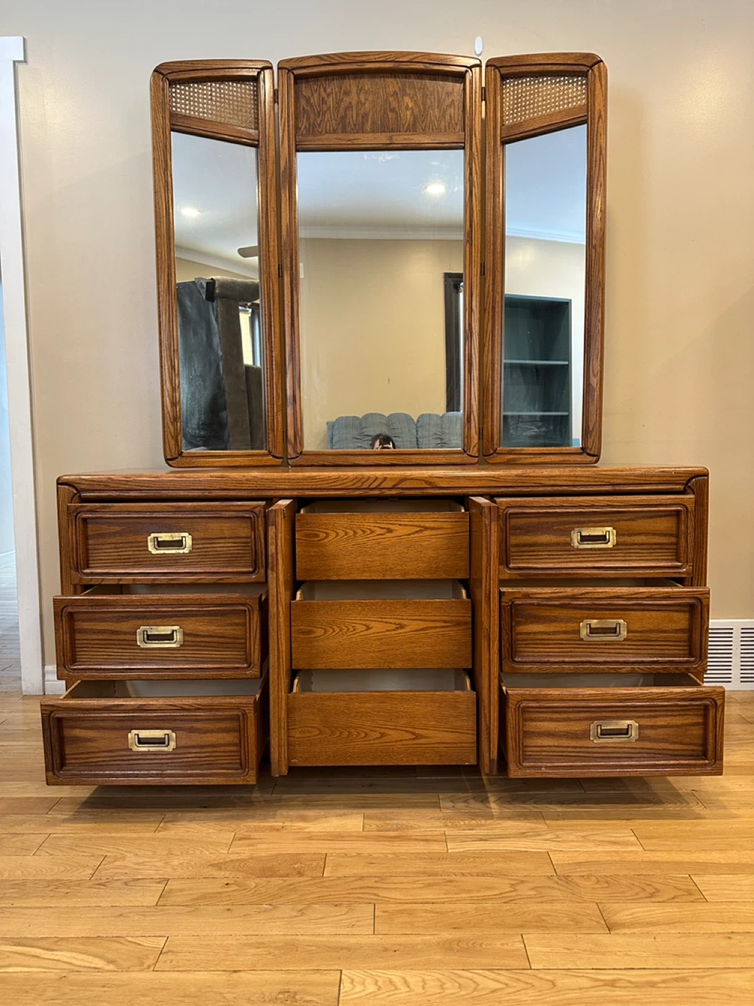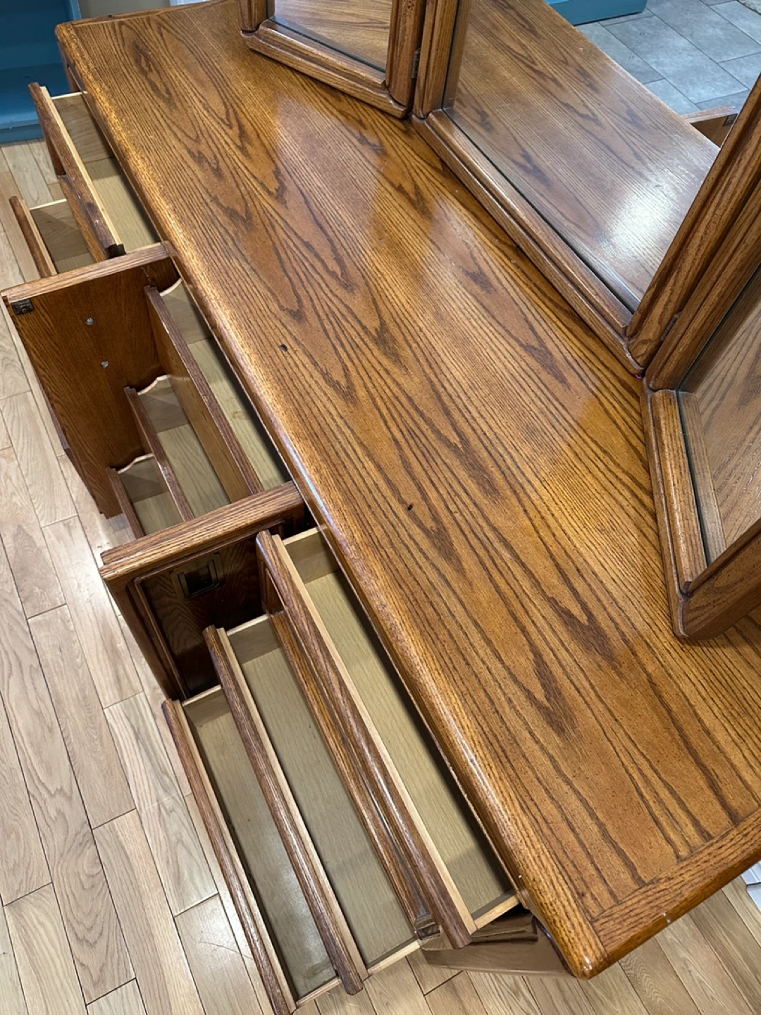 Vintage Oak Dresser w/ Triple Mirror (CAN DELIVER)