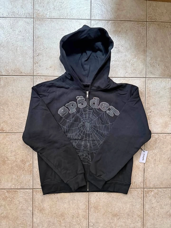 Sp5der OG Web V2 Rhinestone Zip Up Black