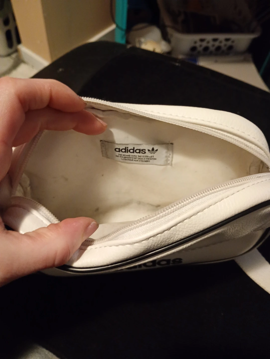 Buy & SellAdidas White Crossbody BagAdidas White Crossbody Bag$25White Adidas crossbody bag with black trim. It has a zippered main compartment and a front zippered pocket. Made of synthetic leather.ConditionGoodWHERE TO MEETCheck LocationView MapSELLERverifiedJemDelton651 review2 chats·1 favorites·15 viewsSEND CHAT TO SELLERHi Jem! I’m interested in your listing.Hi Jem! I’m interested in your listing.Get the Karrot app to chatSign In to chat