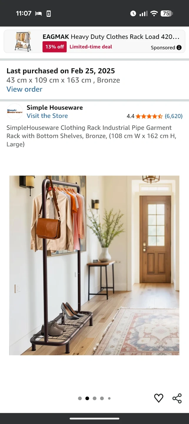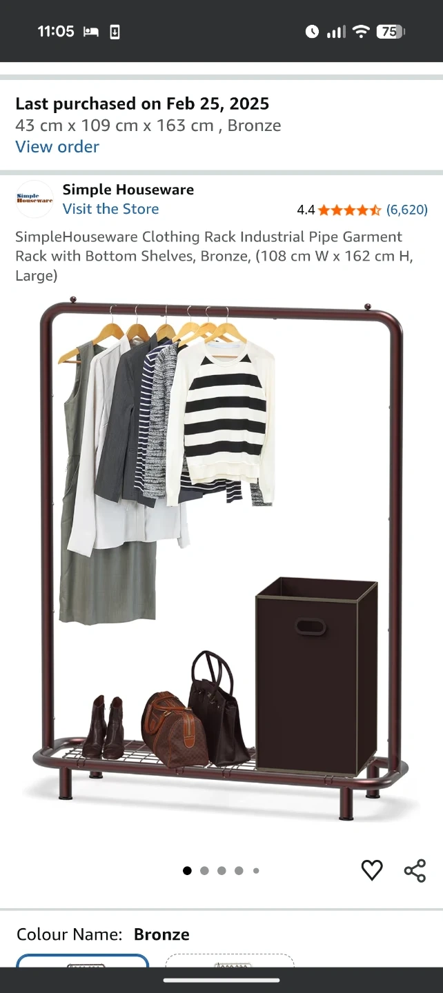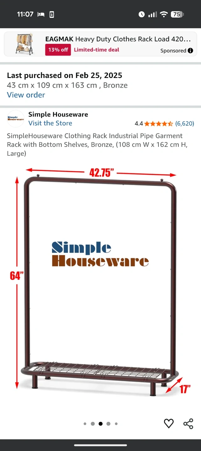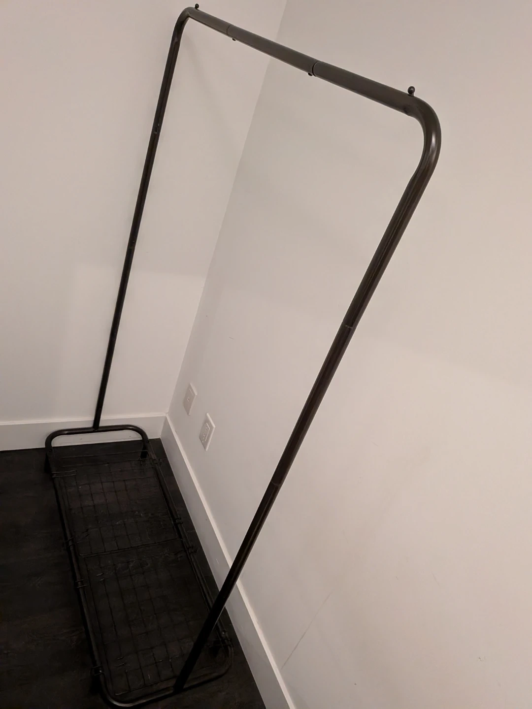 Heavy duty clothes rack with bottom shelves. It's 42.75" wide and 64" tall. Black colour.