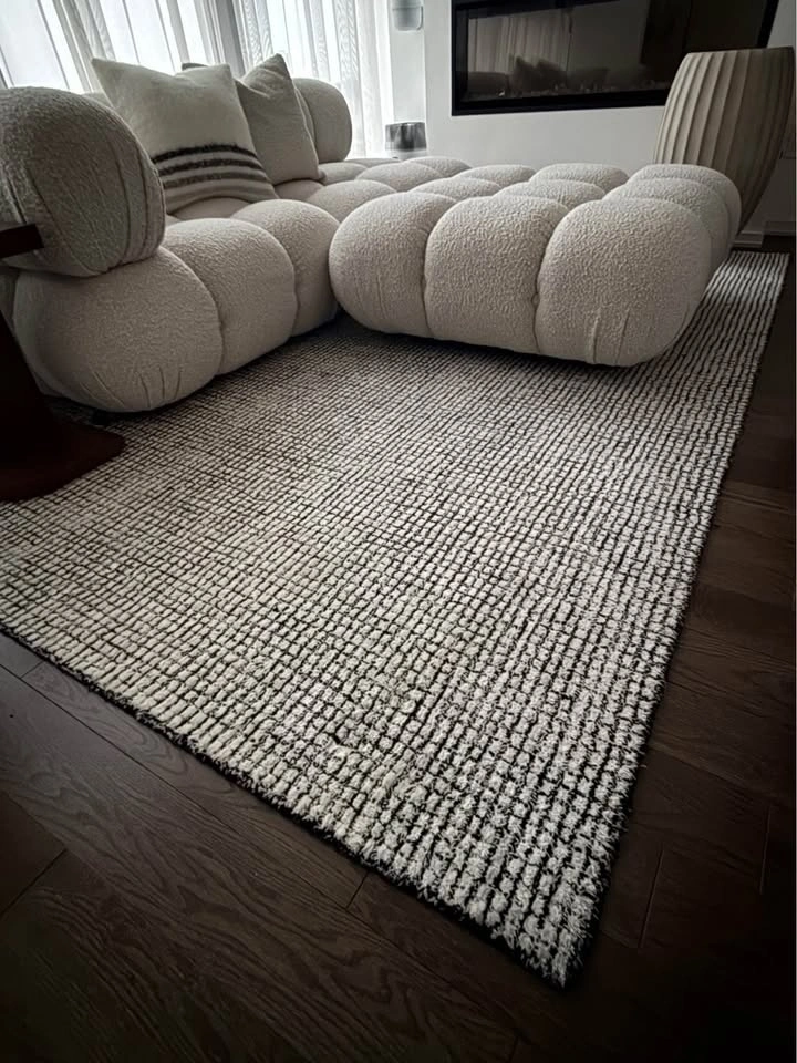 Modern, minimal abstract rug from Safavieh in a neutral ivory and black weave. Subtle texture with a soft, understated pattern that works beautifully in contemporary, minimalist, or modern spaces. Looks great with black, white, wood, or neutral interiors. Brand: Safavieh, Style: Abstract / Modern, Color: Ivory / Black, Size: 6’ x 9’. Condition: Excellent / like new (no stains, damage, or odors). From a smoke-free, pet-free home. Perfect for a living room, bedroom, or office. Originally purchased for over $500. 60% Viscose, 40% Wool. Pickup only. Serious inquiries welcome. Downtown Toronto.