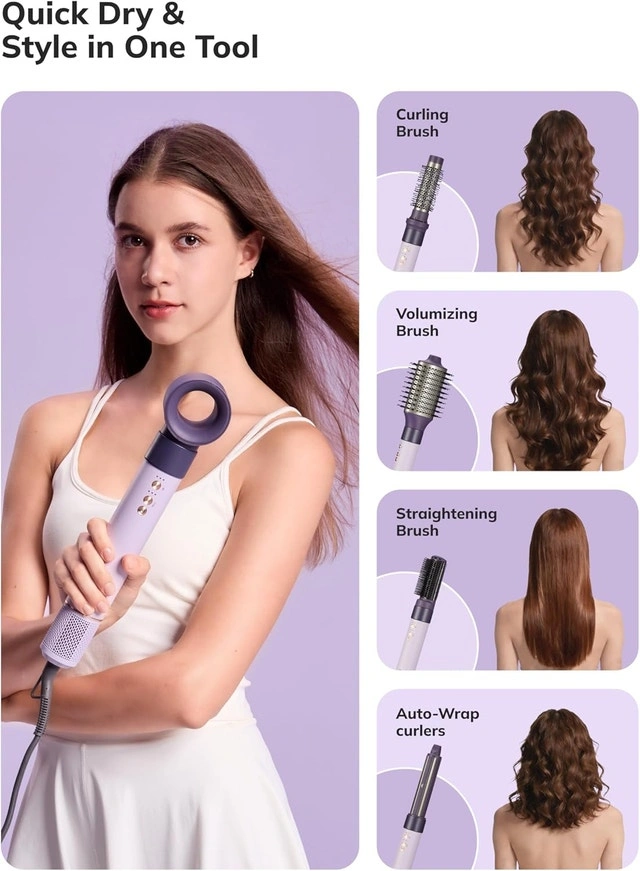 Brand new, still in the sealed box. Pick ups are at Hwy 7 & Warden. This is a versatile 6-in-1 hair styling tool that includes multiple attachments like an automatic curling iron, blow dryer head, straightening comb, and round brushes. You can easily curl, straighten, volumize, and smooth your hair in minutes, which is perfect for busy mornings or quick touch-ups. It features high-speed ionic airflow (110,000 RPM) to reduce frizz, lock in moisture, and protect hair from heat damage, leaving it shiny, smooth, and healthy for all hair types. The styler also has an Auto-Clean mode (hold temperature button for 5 seconds) and a removable rear air vent for easy cleaning. The 360° swivel cord is tangle-free for easy styling from any angle. It comes with complete accessories including heat-resistant gloves, a cleaning brush, clips, combs, and round brushes, all organized in a durable storage pouch and premium gift box, making it great for home, travel, or gifting.