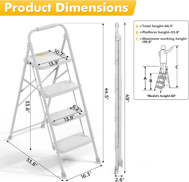 KINGRACK 4 Step Ladder Foldable, Heavy Duty Folding Step Stool
