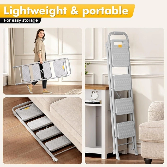 Brand new, in sealed box. Pick up at Hwy 7 & Warden. This household 4 step stool is made of high-quality steel, featuring excellent sturdiness and rust resistance. It's an essential tool for handling tough tasks at home, in the garage, or office, providing a wobble-free experience. Wide non-slip pedals maximize foot contact to prevent slipping, prioritizing safety. They are ideal for reaching kitchen shelves or organizing office files, offering a stable foothold. The ergonomic safety lock enables one-hand folding and locking operation, which is convenient and efficient. Perfect for small spaces, it can be easily folded to store under beds or in cabinets, with a safety lock to prevent accidental folding during use. Soft sponge handrails, a thickened frame, and shark-tooth non-slip feet enhance stability and comfort. They provide maximum grip on any surface, ensuring your safety during indoor painting or cleaning projects. Lightweight and versatile, this 4 step kitchen ladder is a must-have for homes, offices, and apartments. Its sleek gray design blends seamlessly with any decor, boosting efficiency for DIY tasks while saving storage space. Cash accepted, Cashless payment accepted.