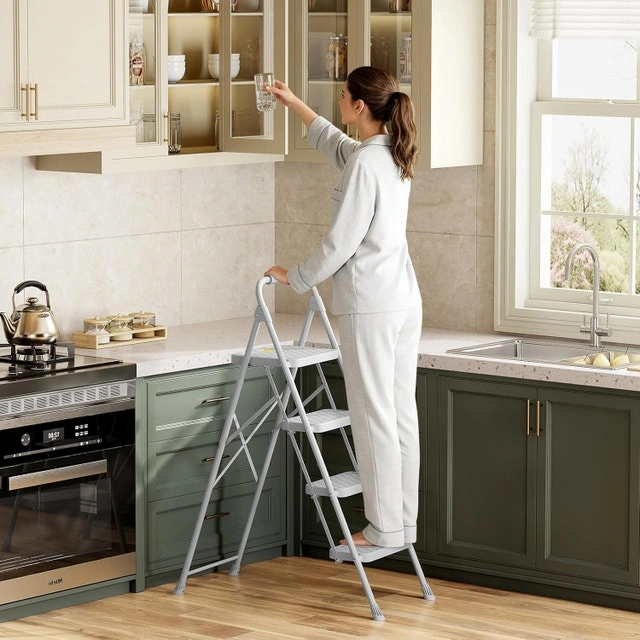 Brand new, in sealed box. Pick up at Hwy 7 & Warden. This household 4 step stool is made of high-quality steel, featuring excellent sturdiness and rust resistance. It's an essential tool for handling tough tasks at home, in the garage, or office, providing a wobble-free experience. Wide non-slip pedals maximize foot contact to prevent slipping, prioritizing safety. They are ideal for reaching kitchen shelves or organizing office files, offering a stable foothold. The ergonomic safety lock enables one-hand folding and locking operation, which is convenient and efficient. Perfect for small spaces, it can be easily folded to store under beds or in cabinets, with a safety lock to prevent accidental folding during use. Soft sponge handrails, a thickened frame, and shark-tooth non-slip feet enhance stability and comfort. They provide maximum grip on any surface, ensuring your safety during indoor painting or cleaning projects. Lightweight and versatile, this 4 step kitchen ladder is a must-have for homes, offices, and apartments. Its sleek gray design blends seamlessly with any decor, boosting efficiency for DIY tasks while saving storage space. Cash accepted, Cashless payment accepted.