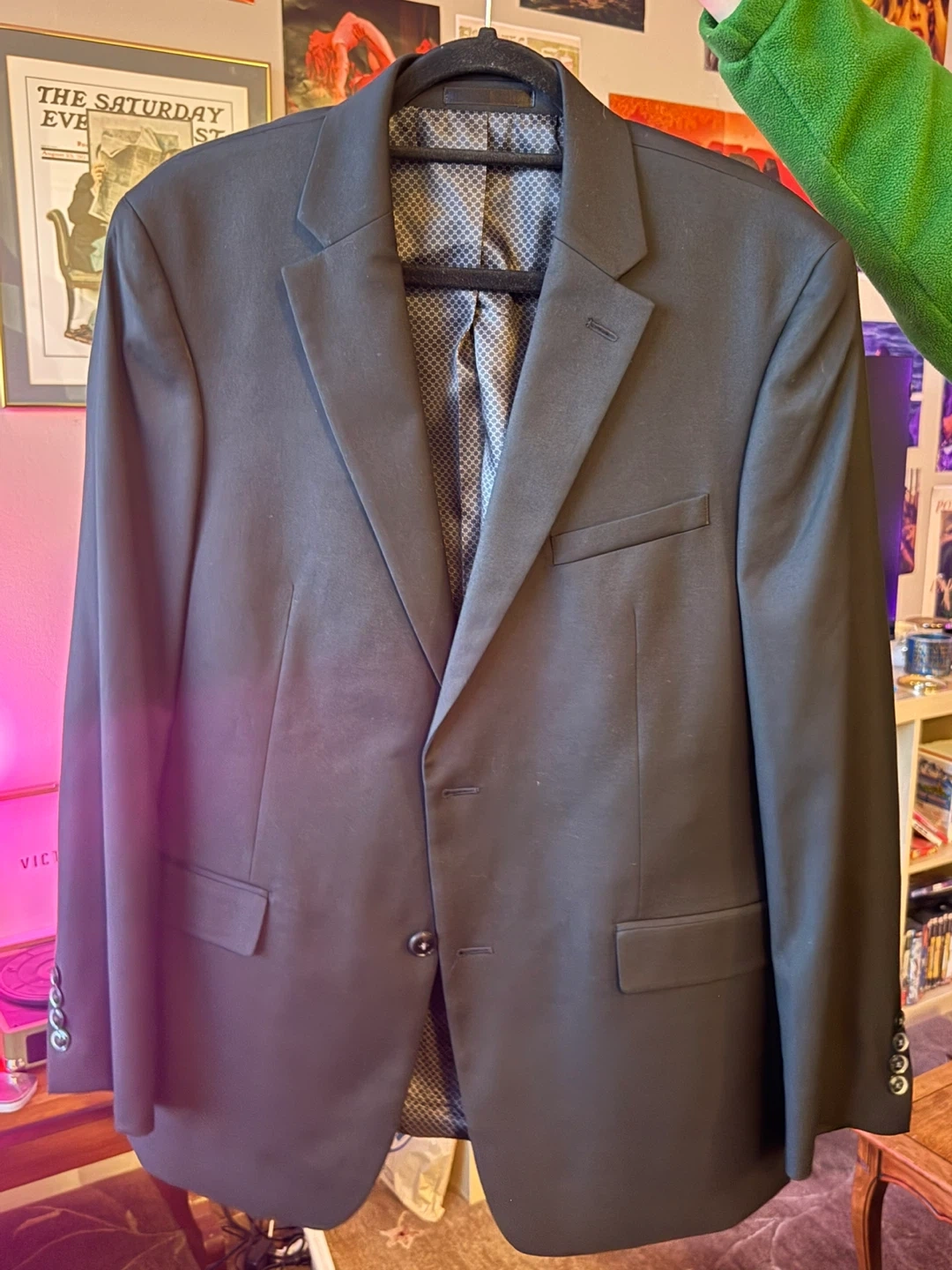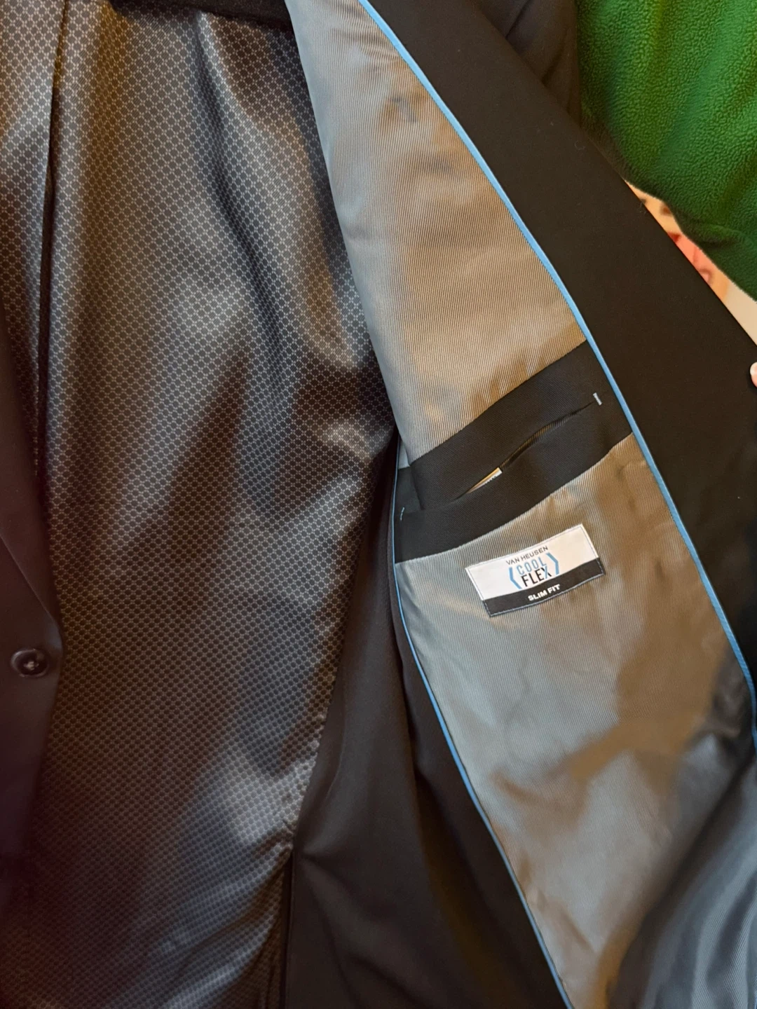 Buy & SellVan Heusen Sport Flex Slim Fit Suit JacketVan Heusen Sport Flex Slim Fit Suit Jacket$10This is a black Van Heusen Sport Flex suit jacket. It's a slim fit style. Made with comfortable fabric for ease of movement.ConditionLike newBrandVan HeusenWHERE TO MEETSt. George Subway StationView MapSELLERverifiedJacobAnnex650 reviews2 chats·0 favorites·17 viewsSEND CHAT TO SELLERHi Jacob! I’m interested in your listing.Hi Jacob! I’m interested in your listing.Get the Karrot app to chatSign In to chat
