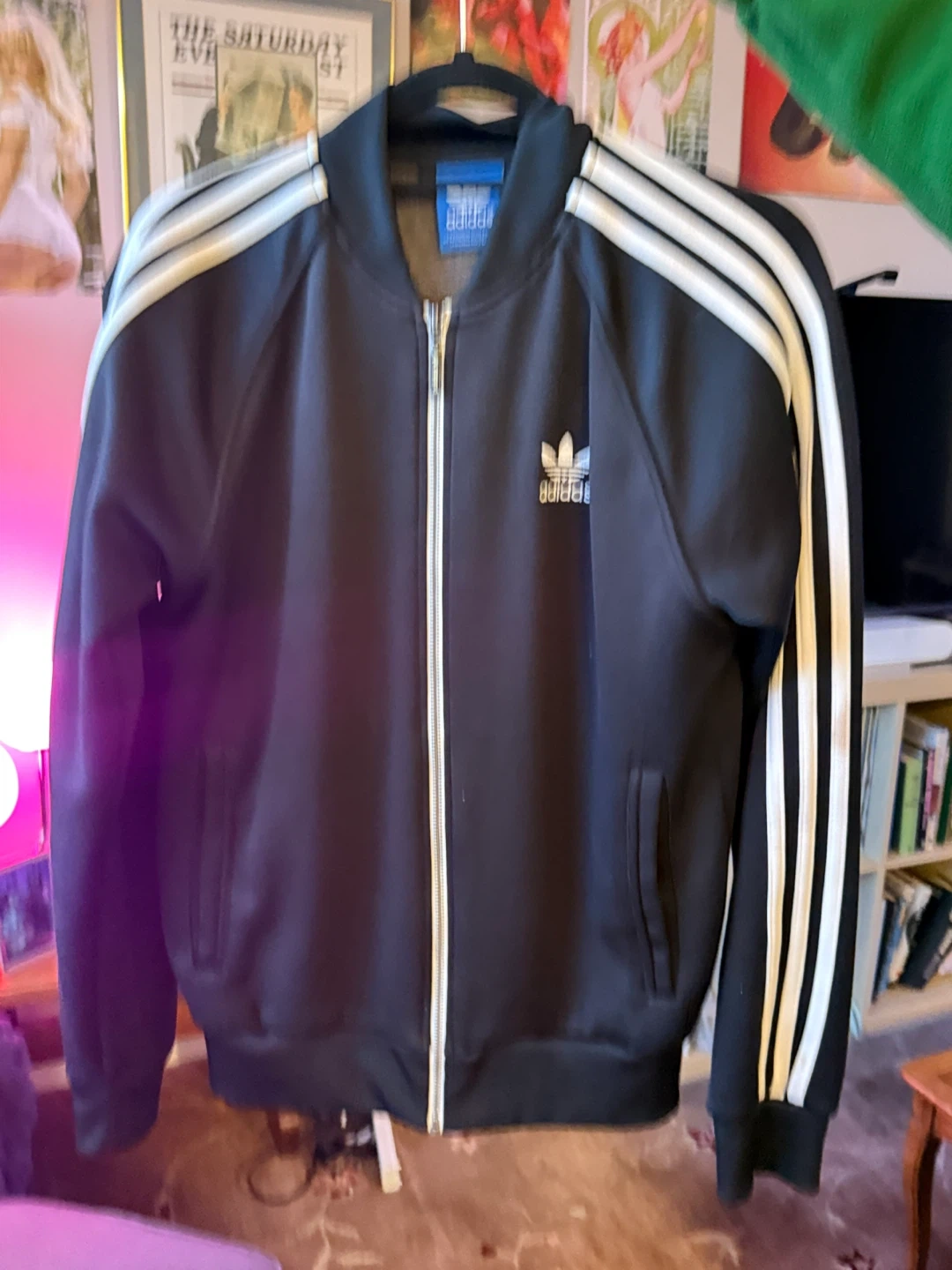 Buy & SellAdidas Track JacketAdidas Track Jacket$17Black Adidas track jacket with white stripes. This jacket is a size S in UK/US sizing. It's perfect for casual wear or light workouts!ConditionGoodSizeSmallBrandAdidasWHERE TO MEETSt. George Subway StationView MapSELLERverifiedJacobAnnex731 review1 chats·2 favorites·87 viewsSEND CHAT TO SELLERHi Jacob! I’m interested in your listing.Hi Jacob! I’m interested in your listing.Get the Karrot app to chatSign In to chat