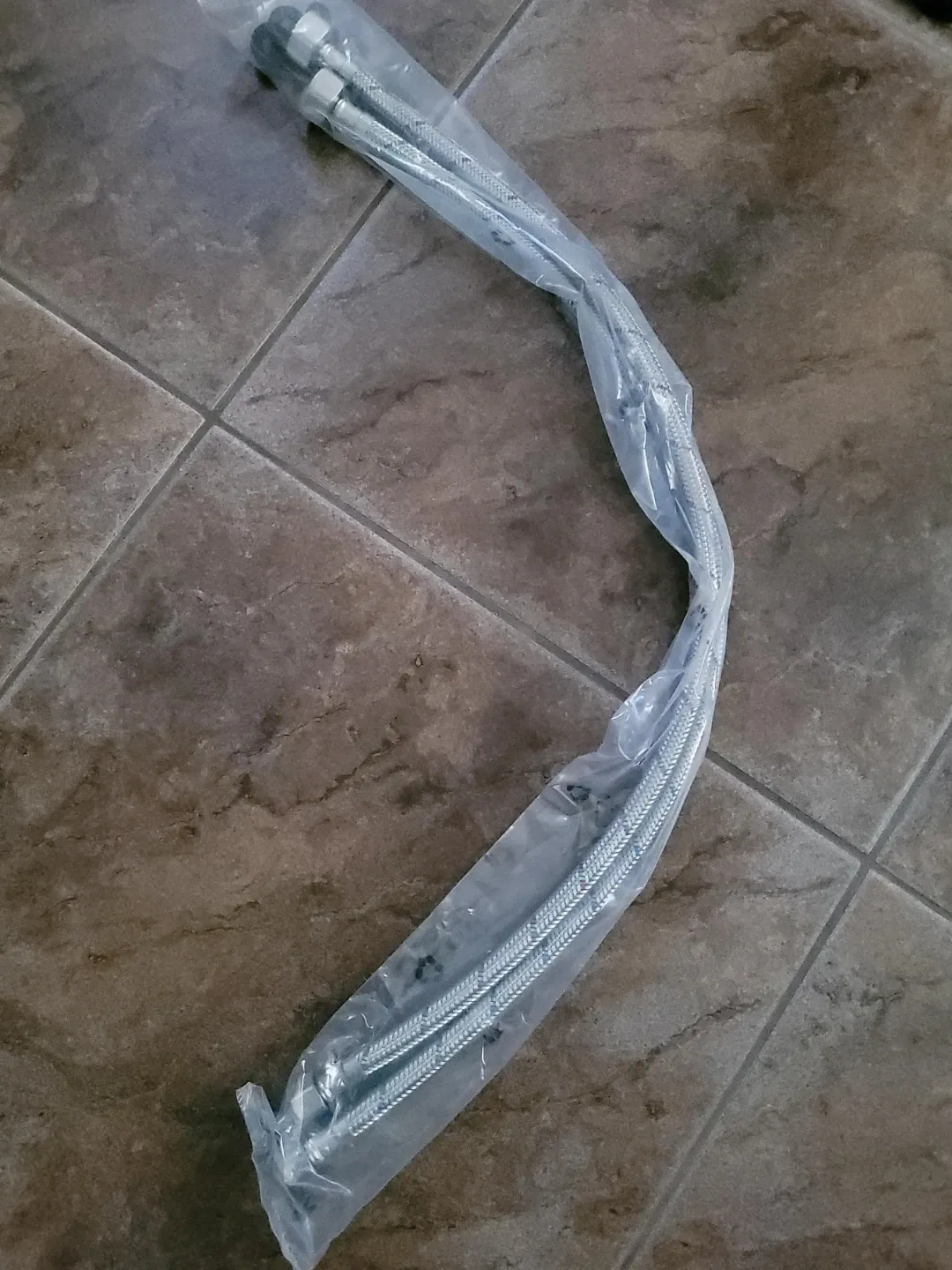 Two 24" flexible braided stainless steel water supply lines for faucets. Connectors are standard sizes. These are new, still in the original plastic packaging.