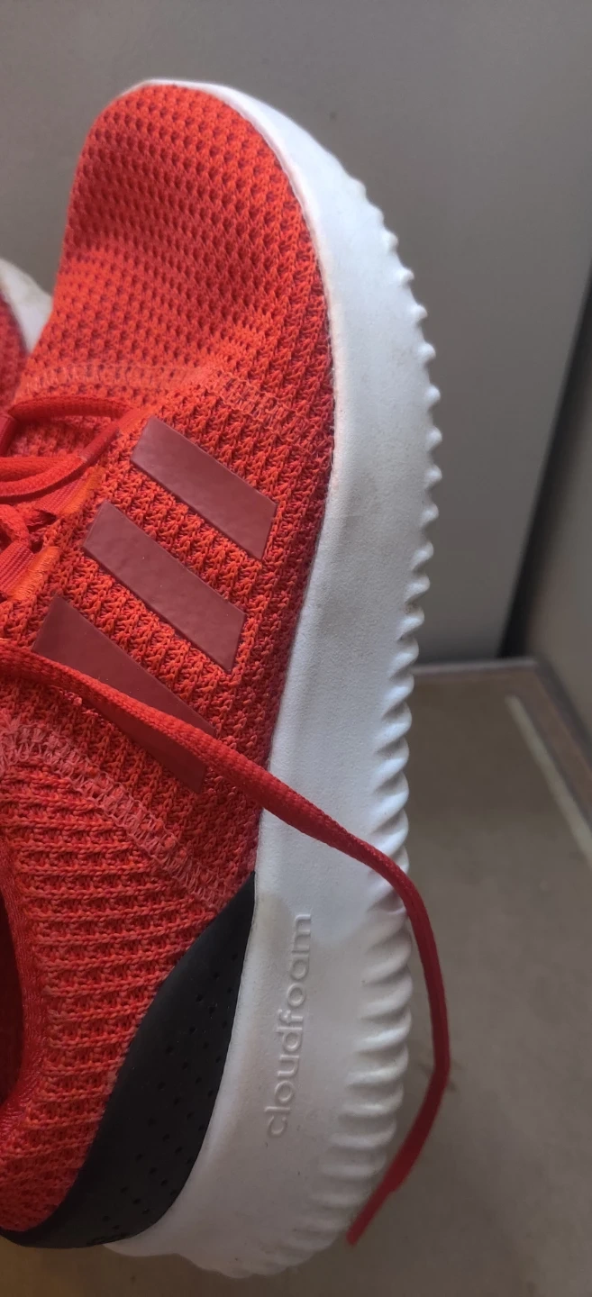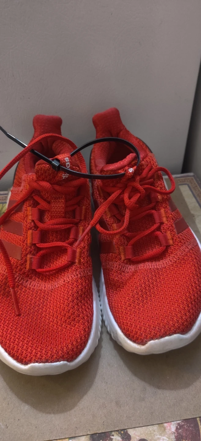 Adidas running shoes feature red knit uppers and white Cloudfoam soles. Size US 4. Perfect for everyday wear or light athletic activities!will fit 6-8 years .Maybe some 5 year olds.Worn only a few times