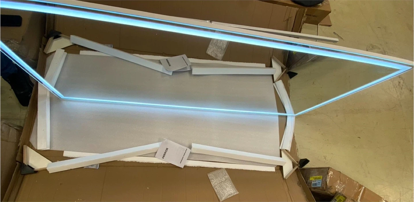This full-length mirror has integrated LED lighting around the frame. It's designed to be leaned against a wall or mounted. This mirror is perfect for checking your full outfit before heading out!