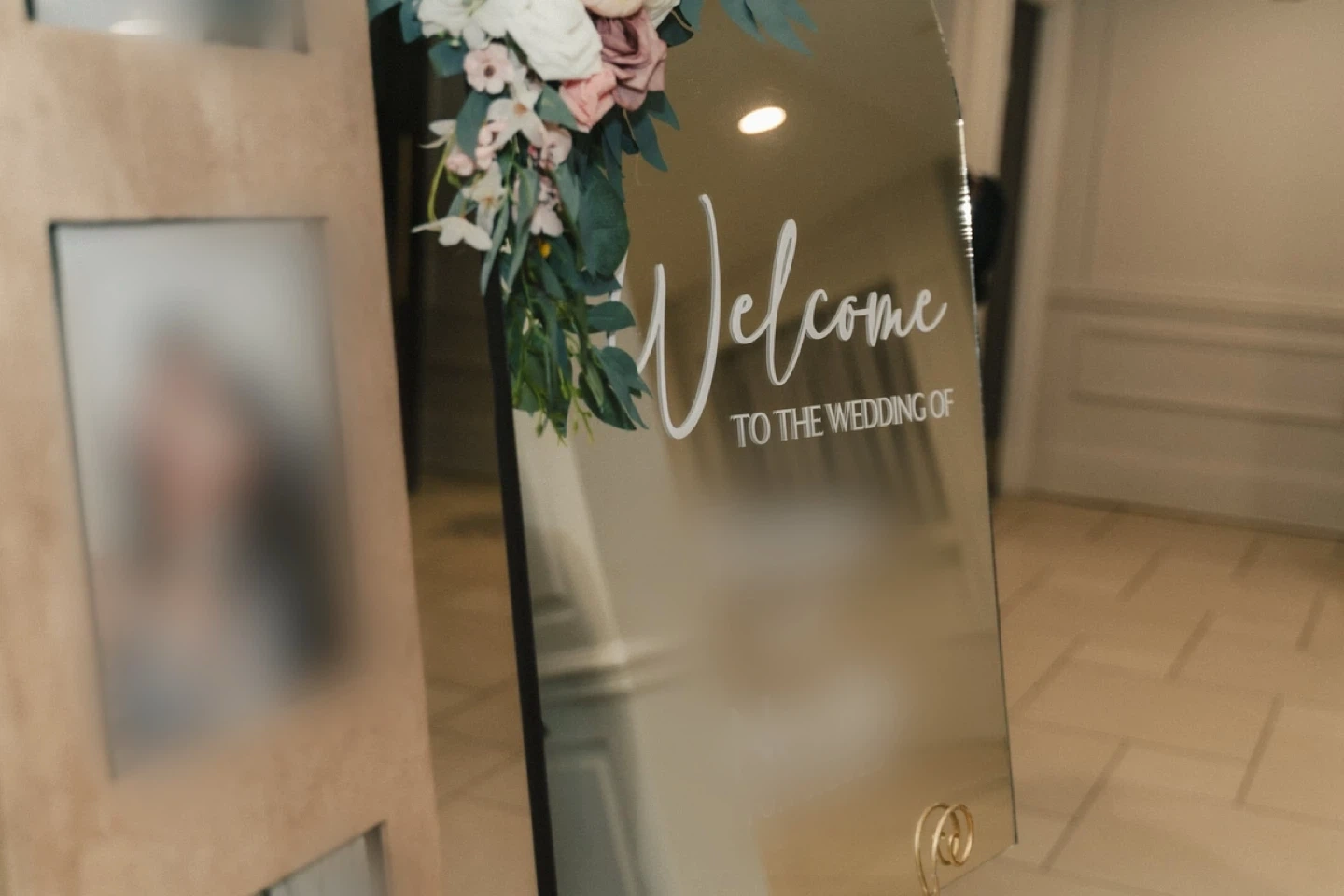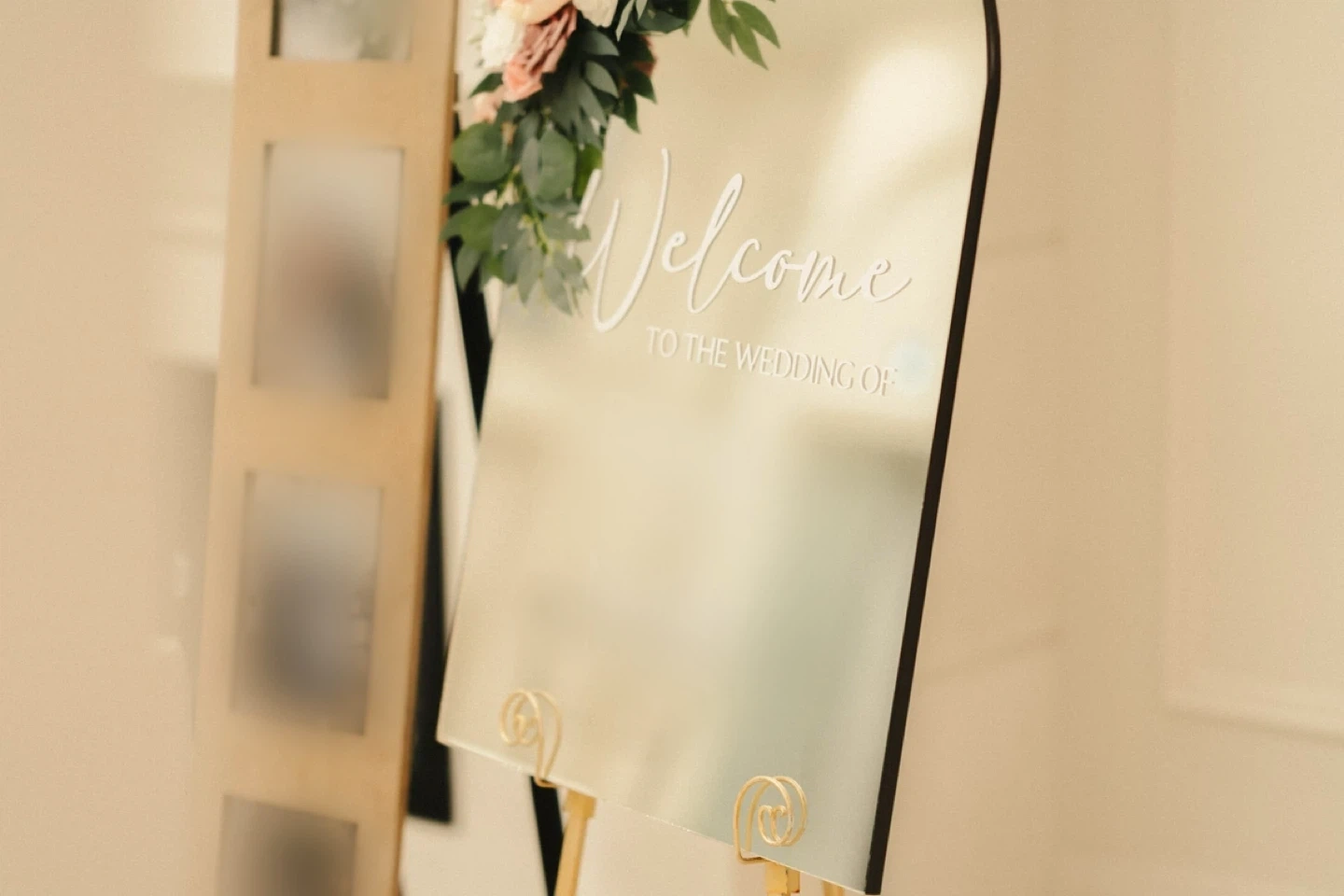 Welcome sign personalized for my wedding. Custom vinyl stickers can be purchased on Temu. I can apply your custom sign for an additional service fee of $50.