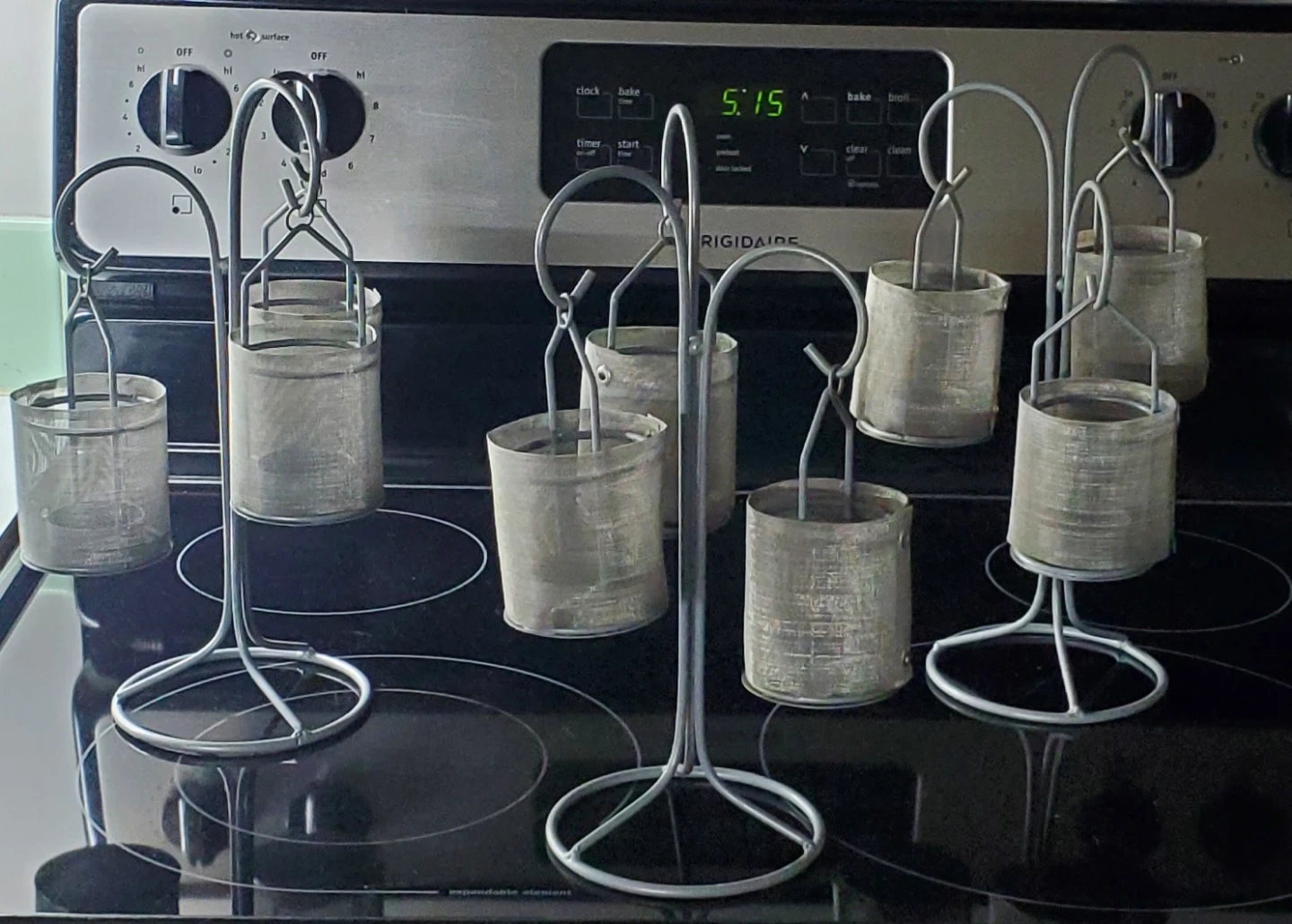 I have 3 metal mesh tea light holders with a stand. They are made of metal and mesh metal . I used them indoors and outdoors .