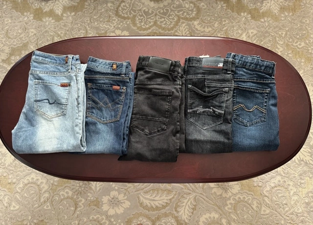7 for all mankind slimmy size 16 $100. 7 for all mankind slimmy size 12 $70. H&M &denim skinny fit jeans size 13-14 $20. Parasuco jeans size 12 $40. Urban Star size 14 $20. All pairs like new.