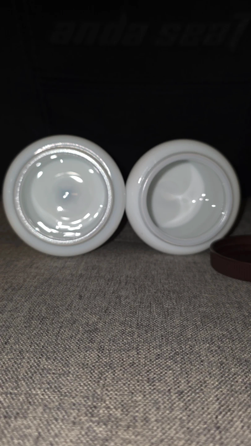Set of 2 White Milk Glass Jars with Brown Lids and Circus Design
