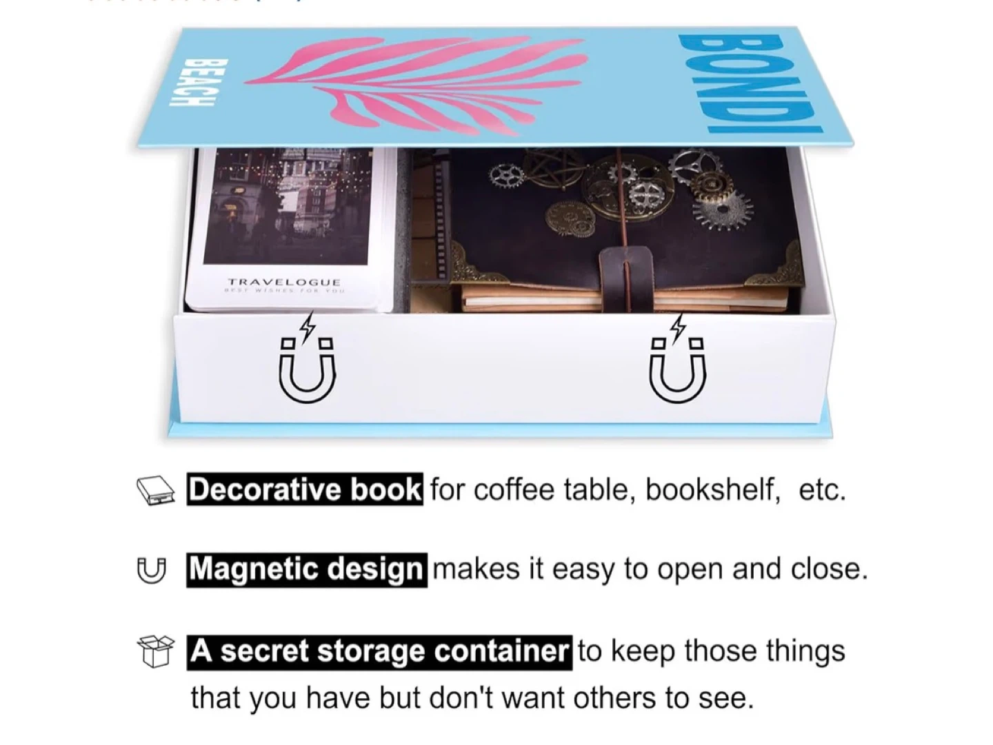 Set of three decorative storage books by Anerzza. Includes 'Bondi Beach', 'Ibiza Bohemia', and 'Capri Dolce Vita'. These faux books offer a stylish way to store small items!